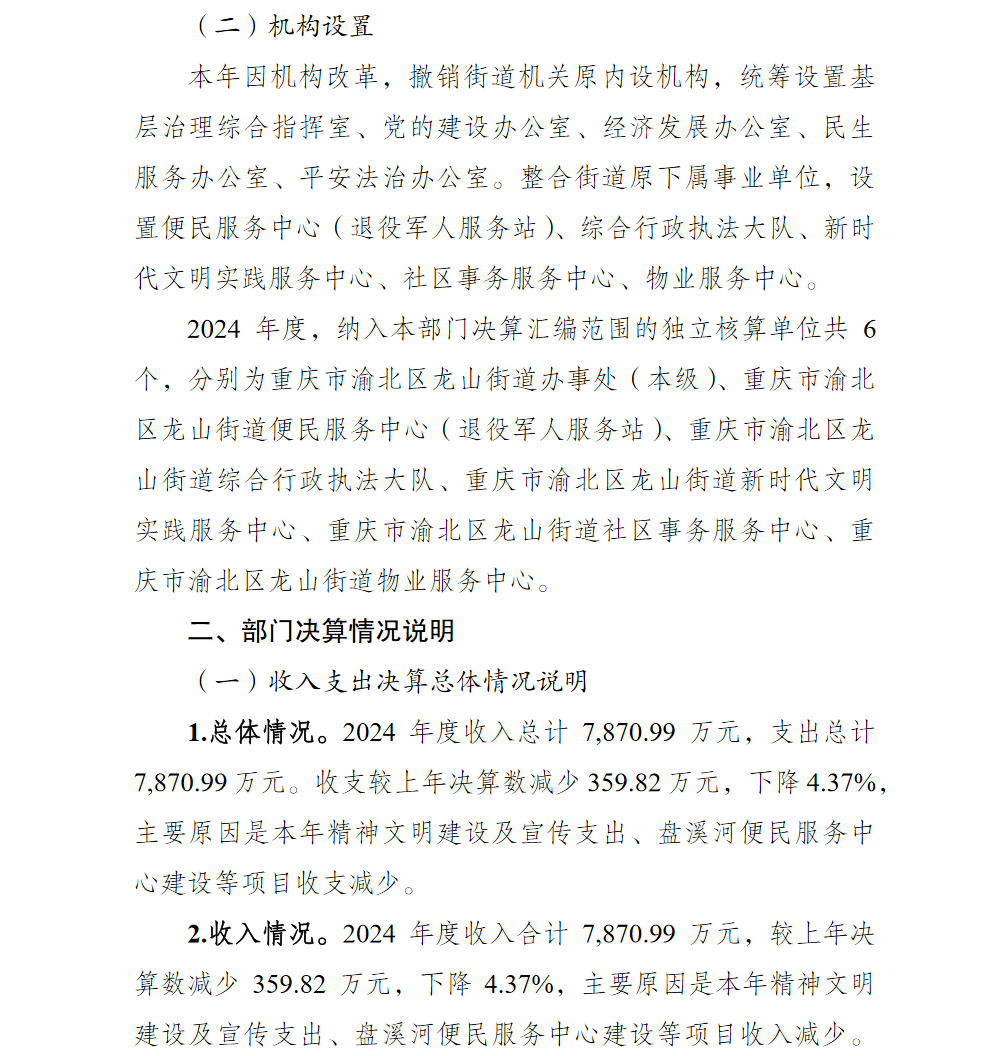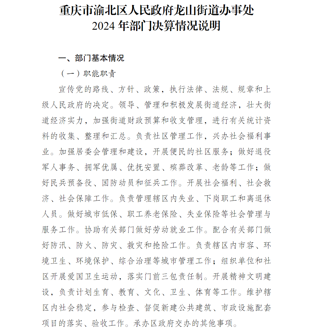 重庆市渝北区人民政府龙山街道办事处2024年部门决算情况说明