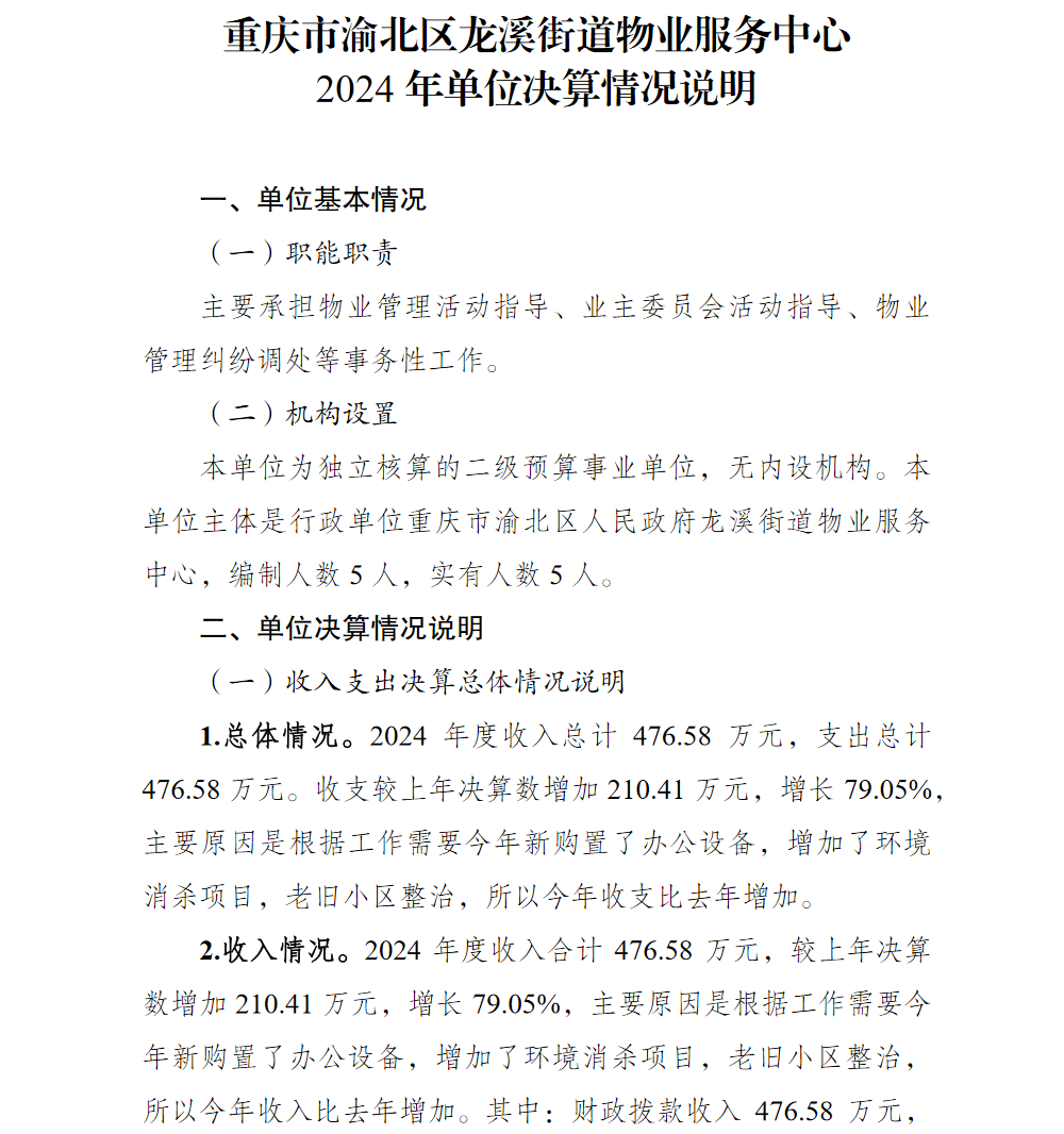 重庆市渝北区龙溪街道物业服务中心2024年单位决算情况说明