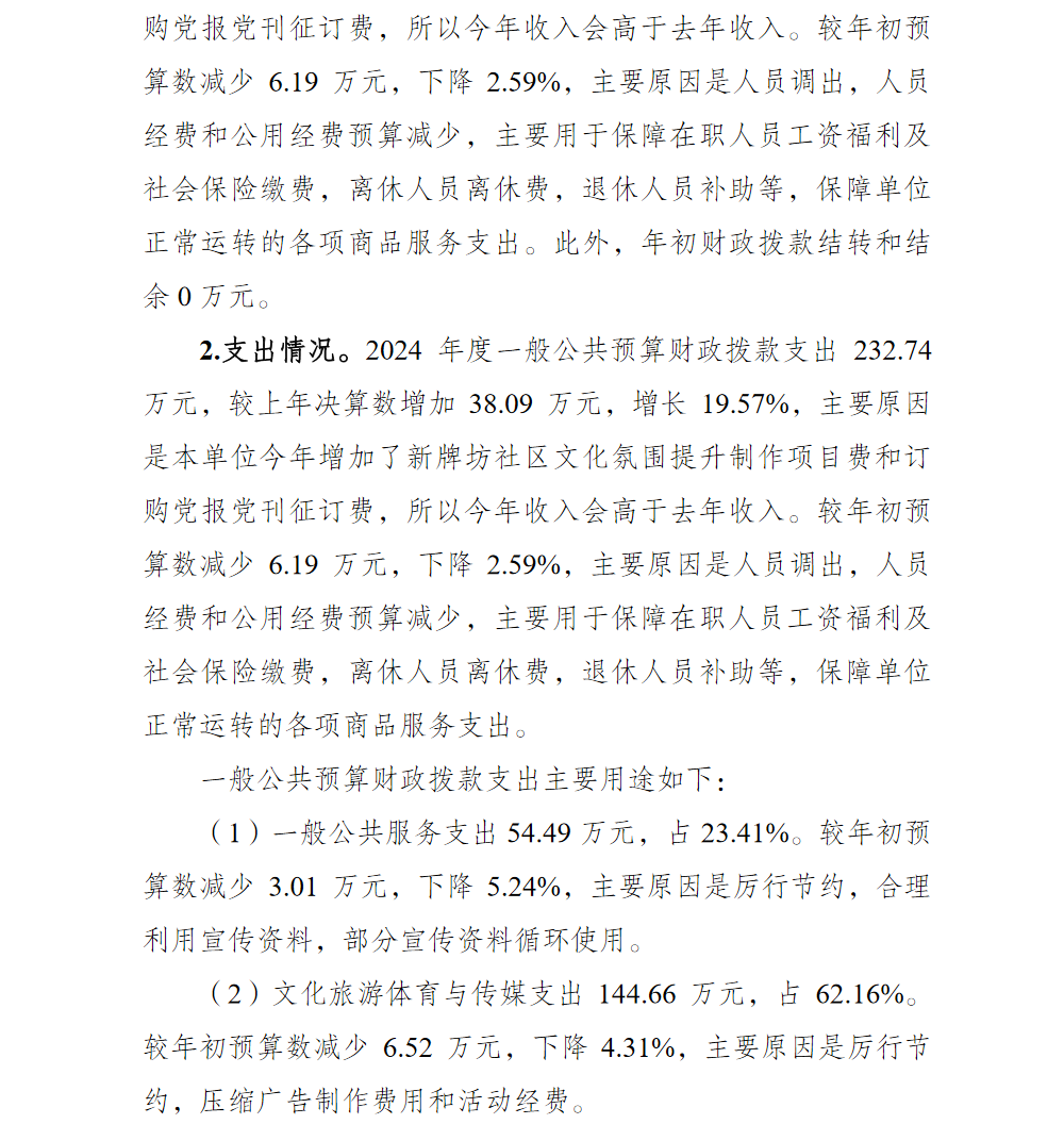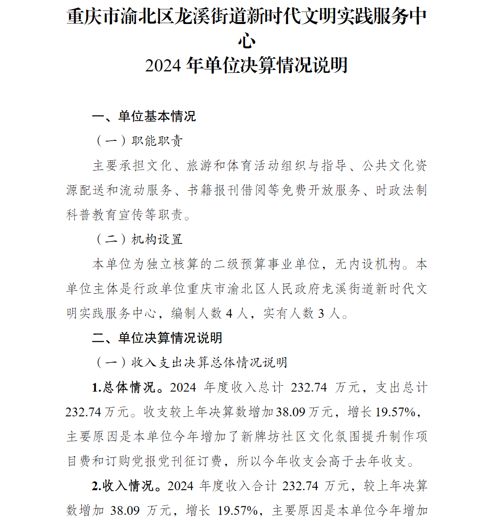 重庆市渝北区龙溪街道新时代文明实践服务中心2024年单位决算情况说明