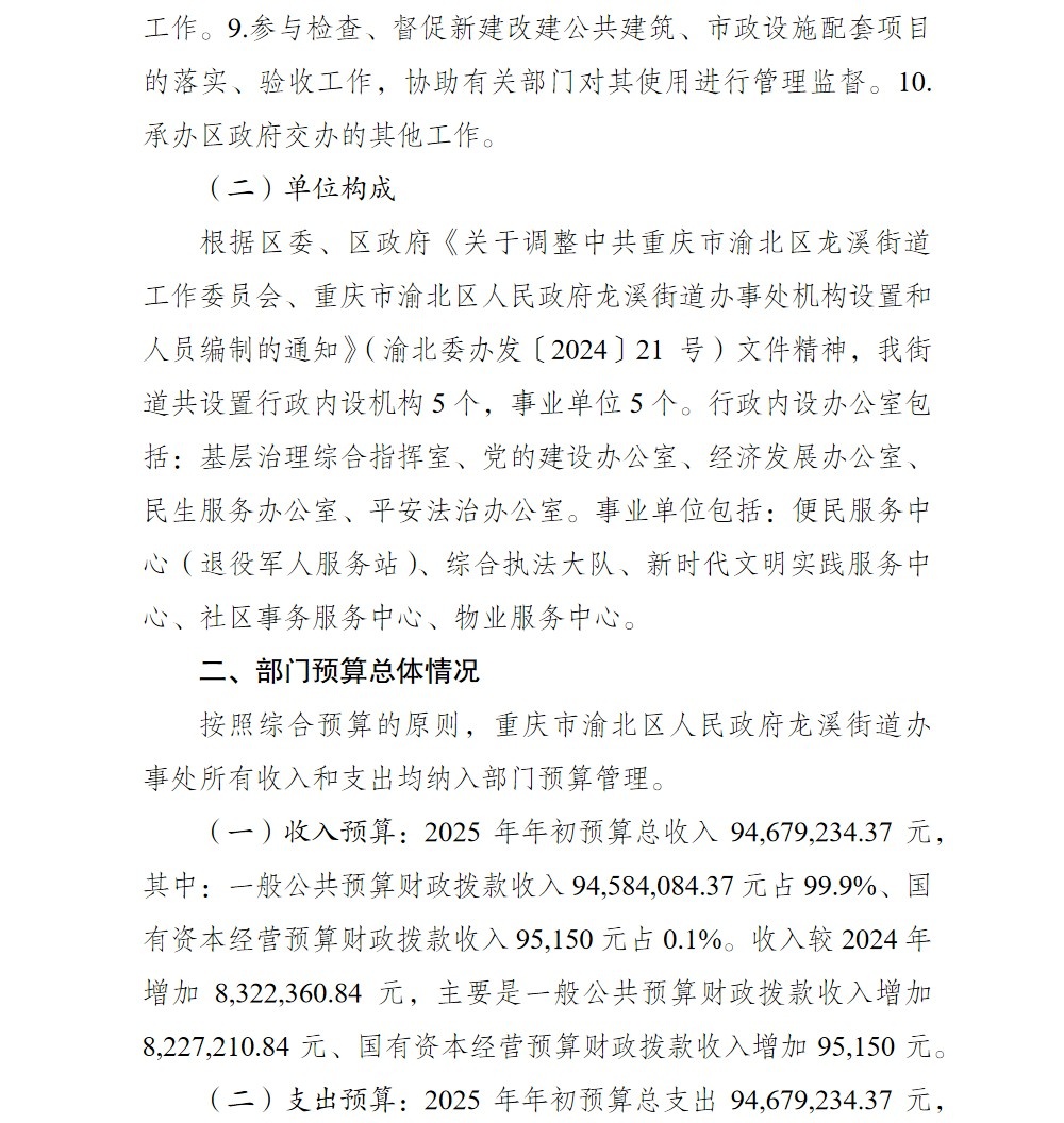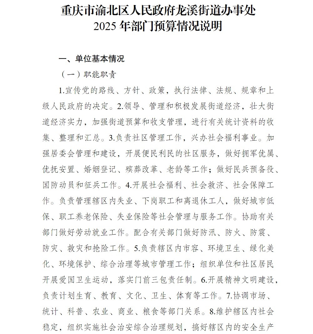 重庆市渝北区人民政府龙溪街道办事处2025年部门预算情况说明