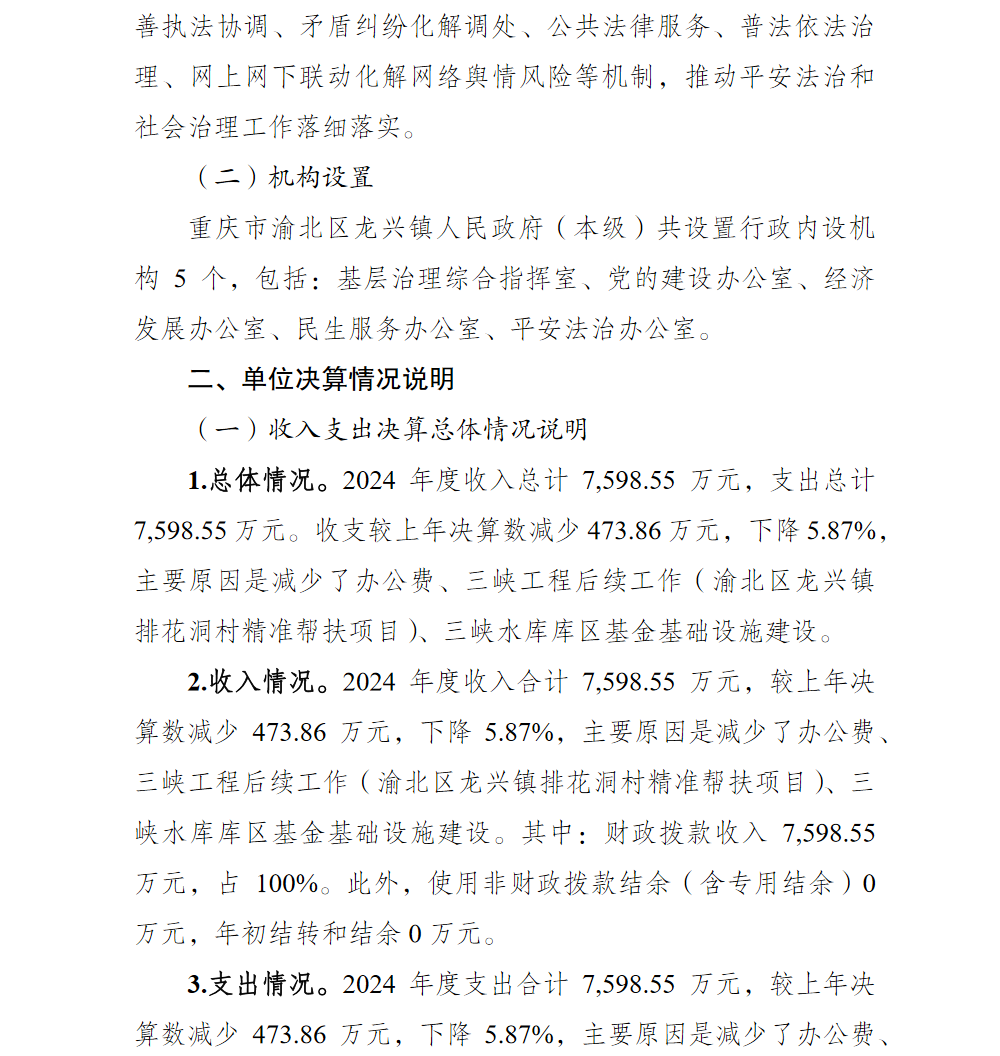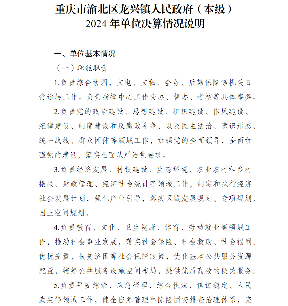 重庆市渝北区龙兴镇人民政府(本级)2024年单位决算情况说明