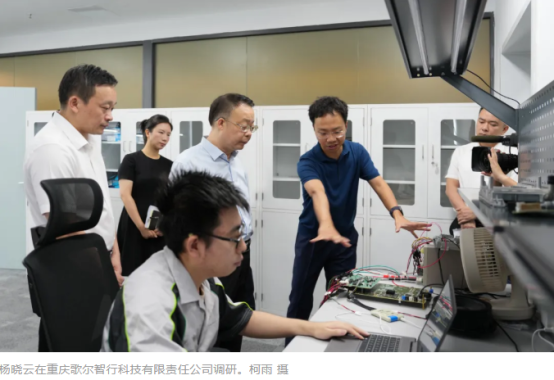 重庆歌尔智行科技有限责任公司以汽车智能声学软件开发、功能量产交付等为主攻方向,拥有主动路噪降噪、主动声浪设计等自主产权技术。杨晓云来到企业声学实验室,了解产品研发、技术服务等情况,希望企业抢抓智能网联新能源汽车发展机遇,加大研发投入,加强关键核心技术攻关。传音控股重庆研发中心是传音在西南地区布局的重要战略研发基地,深耕手机软件、影像开发、移动互联、游戏开发、工业设计等领域,研发创新取得新突破。杨晓云深入了解技术创新、应用场景开发、二期项目建设等情况,希望企业更好发挥龙头链主作用,加快创新要素和高端人才集聚,高水平打造产业创新综合体。