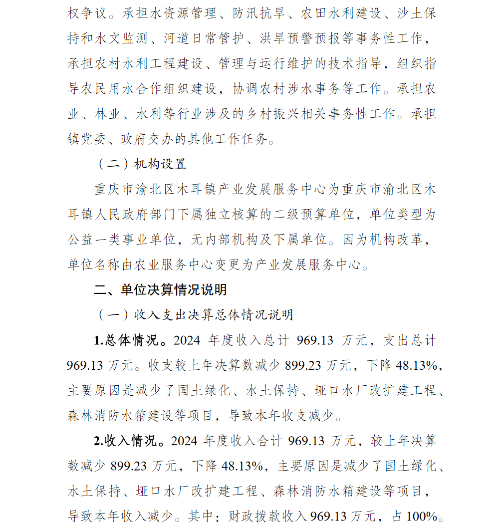 重庆市渝北区木耳镇产业发展服务中心2024年单位决算情况说明及附表.pdf