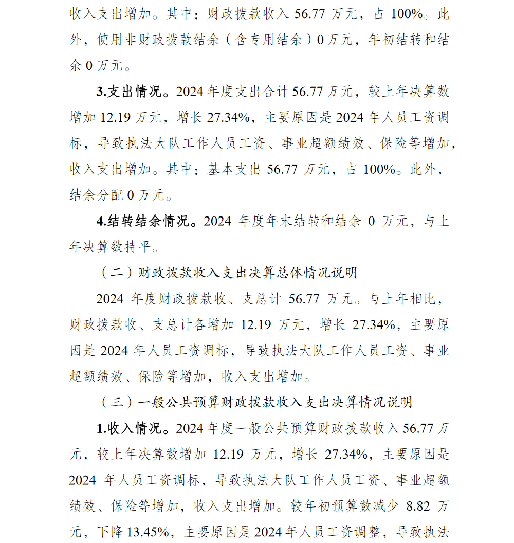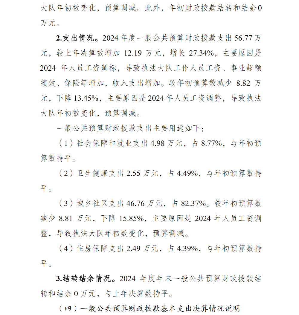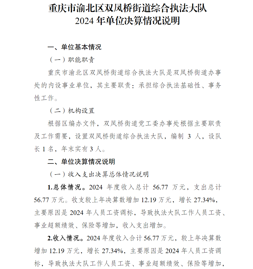 重庆市渝北区双凤桥街道综合行政执法大队2024年单位决算情况说明