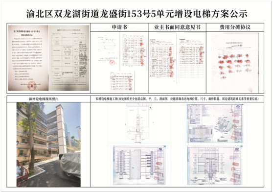 关于双龙湖街道龙盛街153号5单元增设电梯的公示
