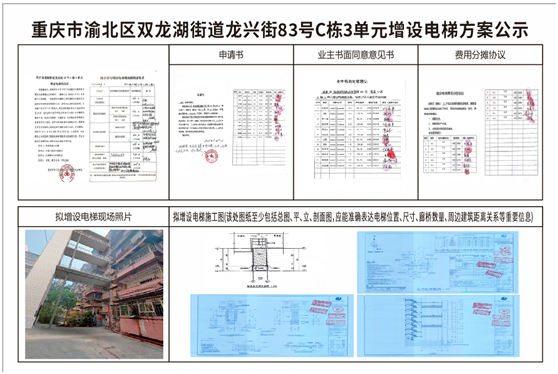 关于双龙湖街道龙兴街83号C栋3单元增设电梯的公示