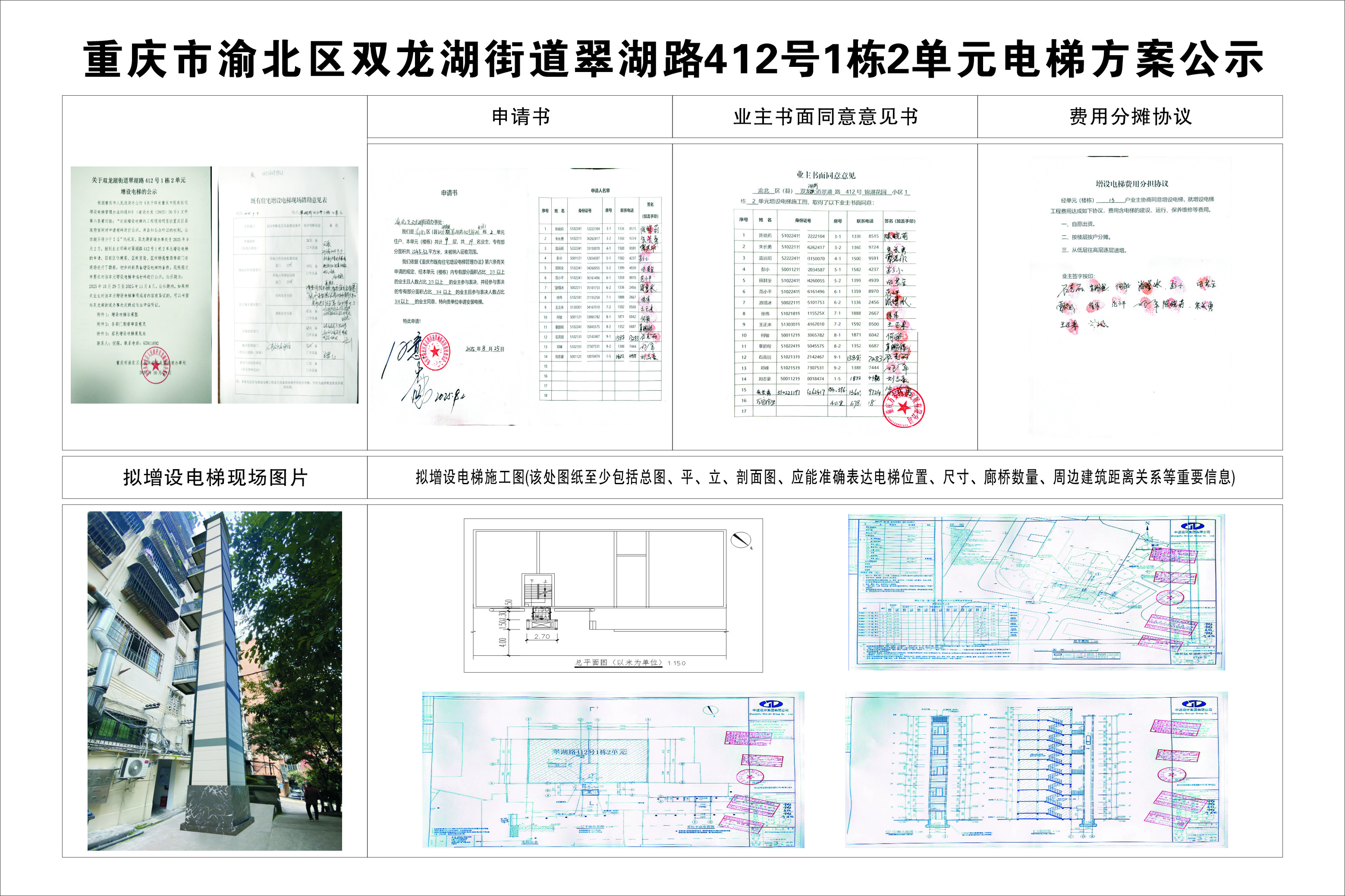 关于双龙湖街道翠湖路412号1栋2单元增设电梯的公示