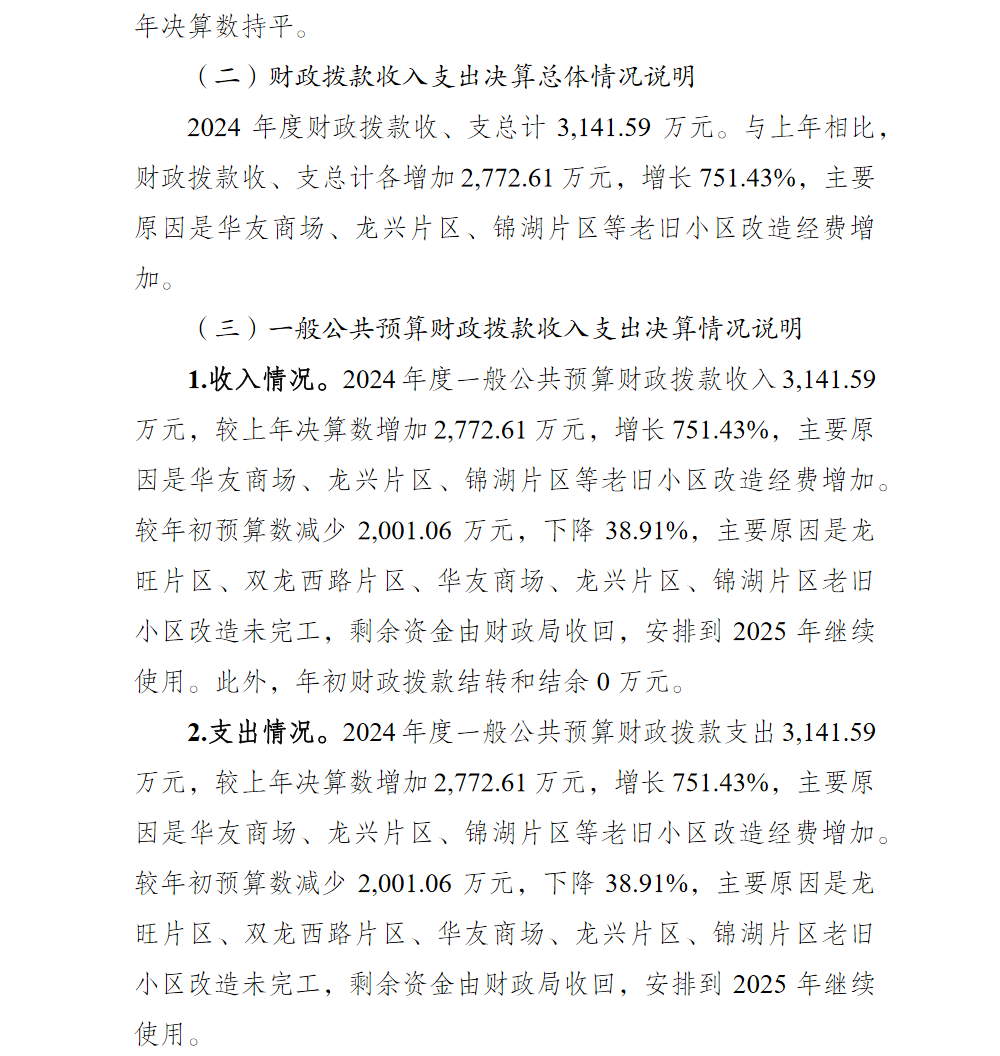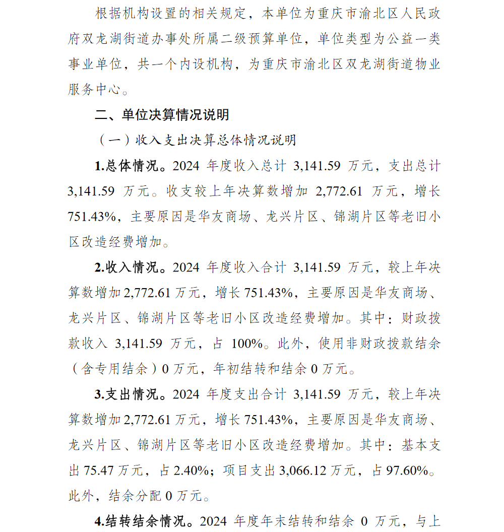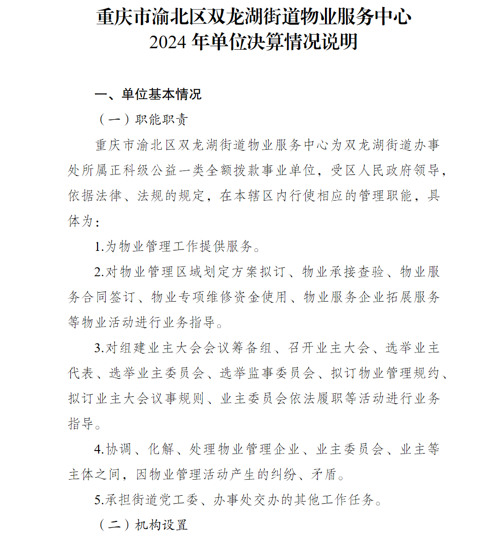 重庆市渝北区双龙湖街道物业服务中心2024年单位决算情况说明