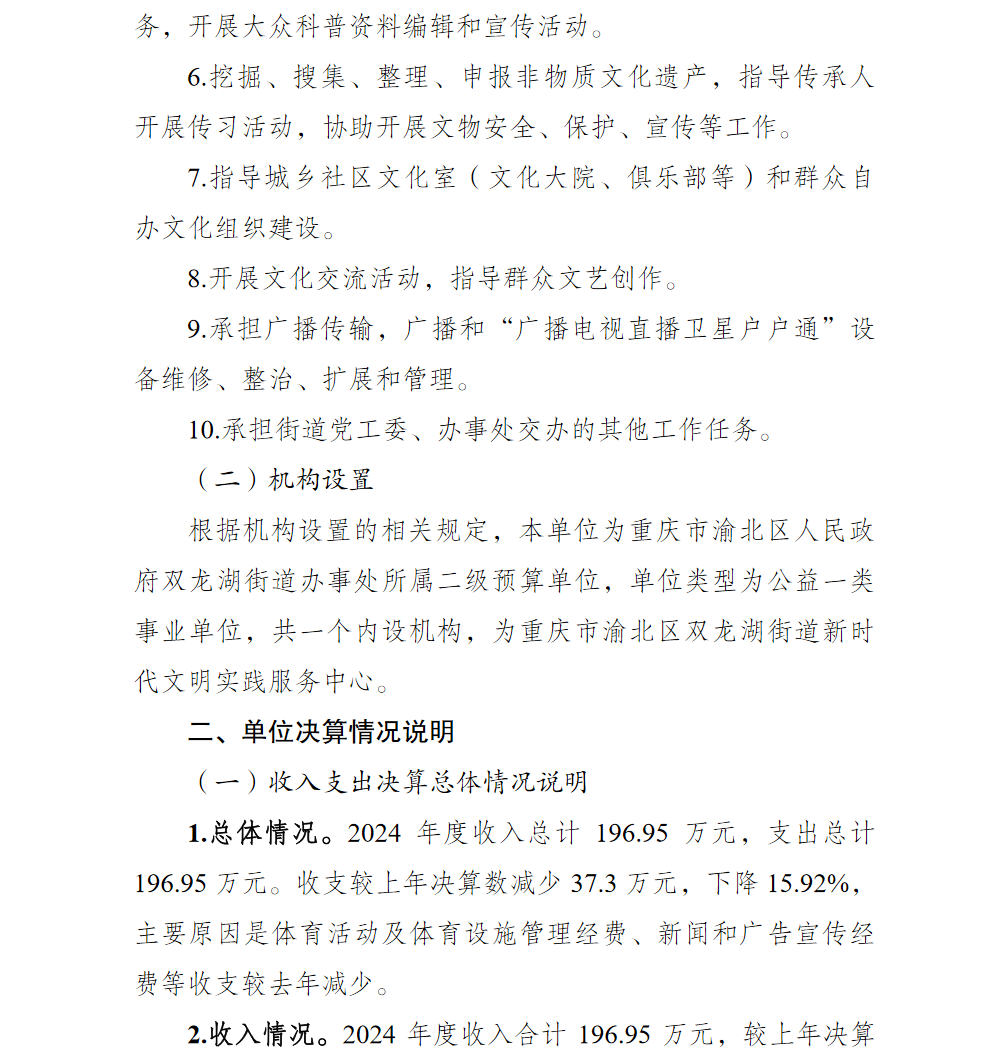重庆市渝北区双龙湖街道新时代文明实践服务中心2024年单位决算情况说明及附表.pdf
