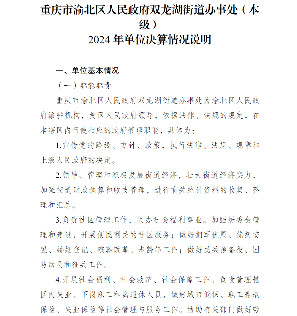 重庆市渝北区人民政府双龙湖街道办事处(本级)2024年单位决算情况说明及附表.pdf