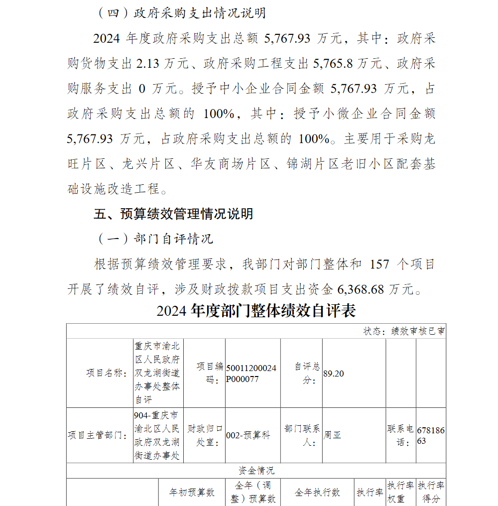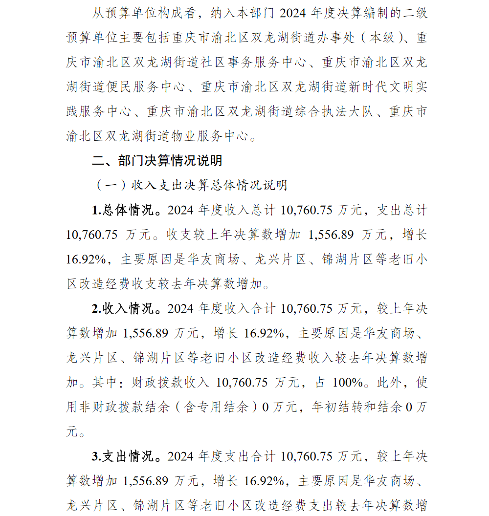 重庆市渝北区人民政府双龙湖街道办事处2024年部门决算情况说明及附表.pdf