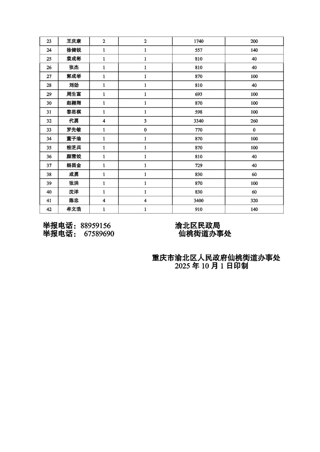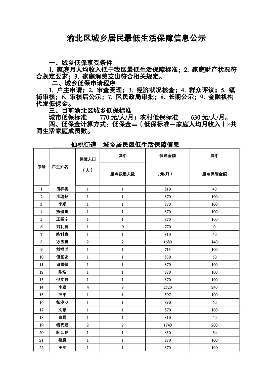 渝北区城乡居民最低生活保障信息公示—2025年10月