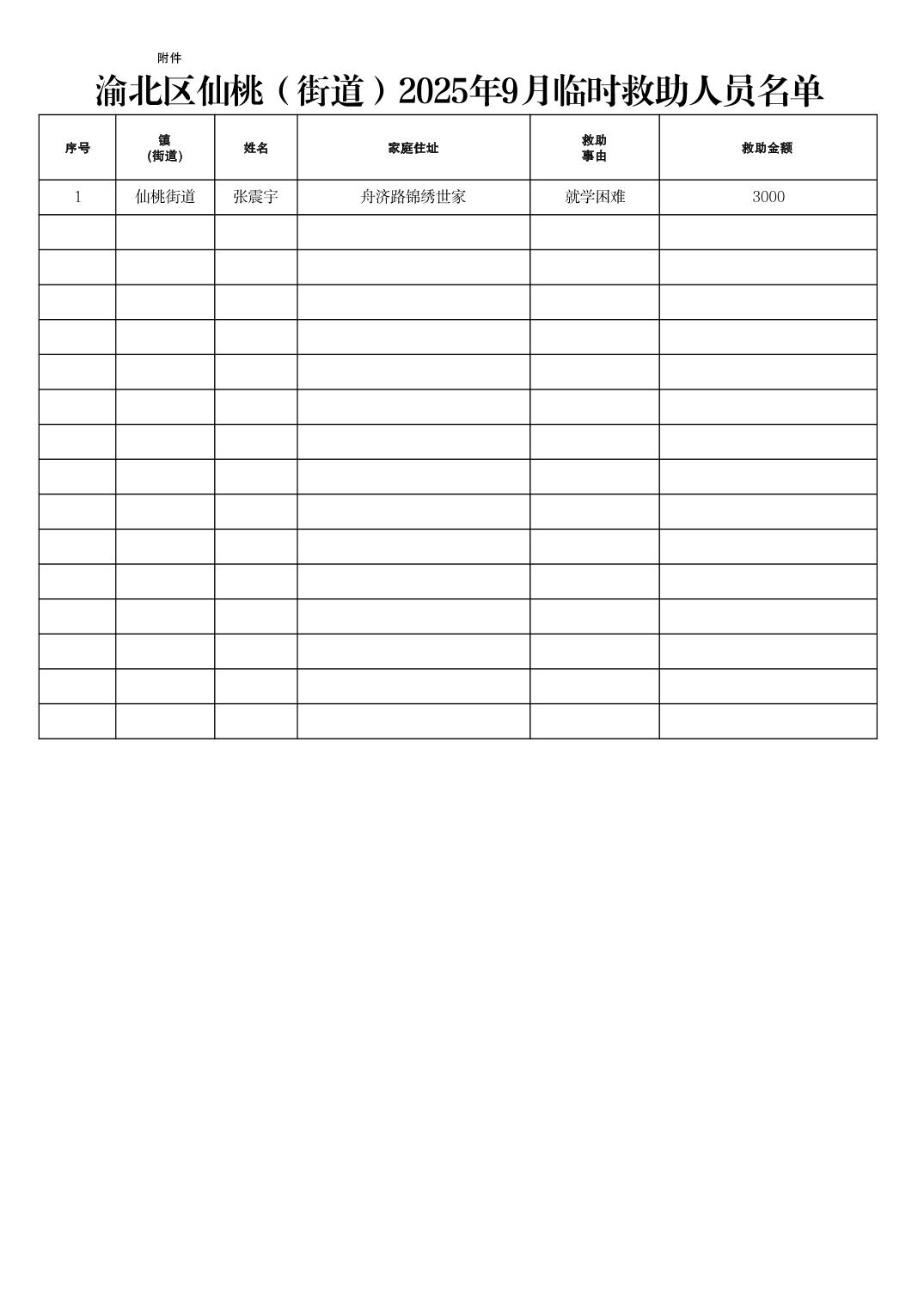 渝北区仙桃(街道)2025年9月临时救助人员名单