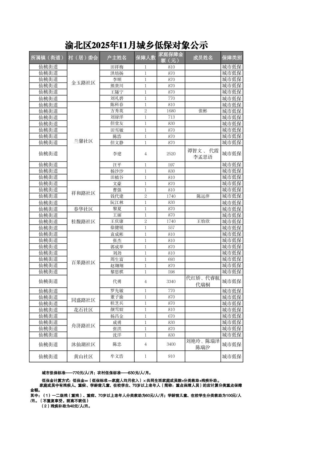 渝北区城乡居民最低生活保障信息公示—2025年11月
