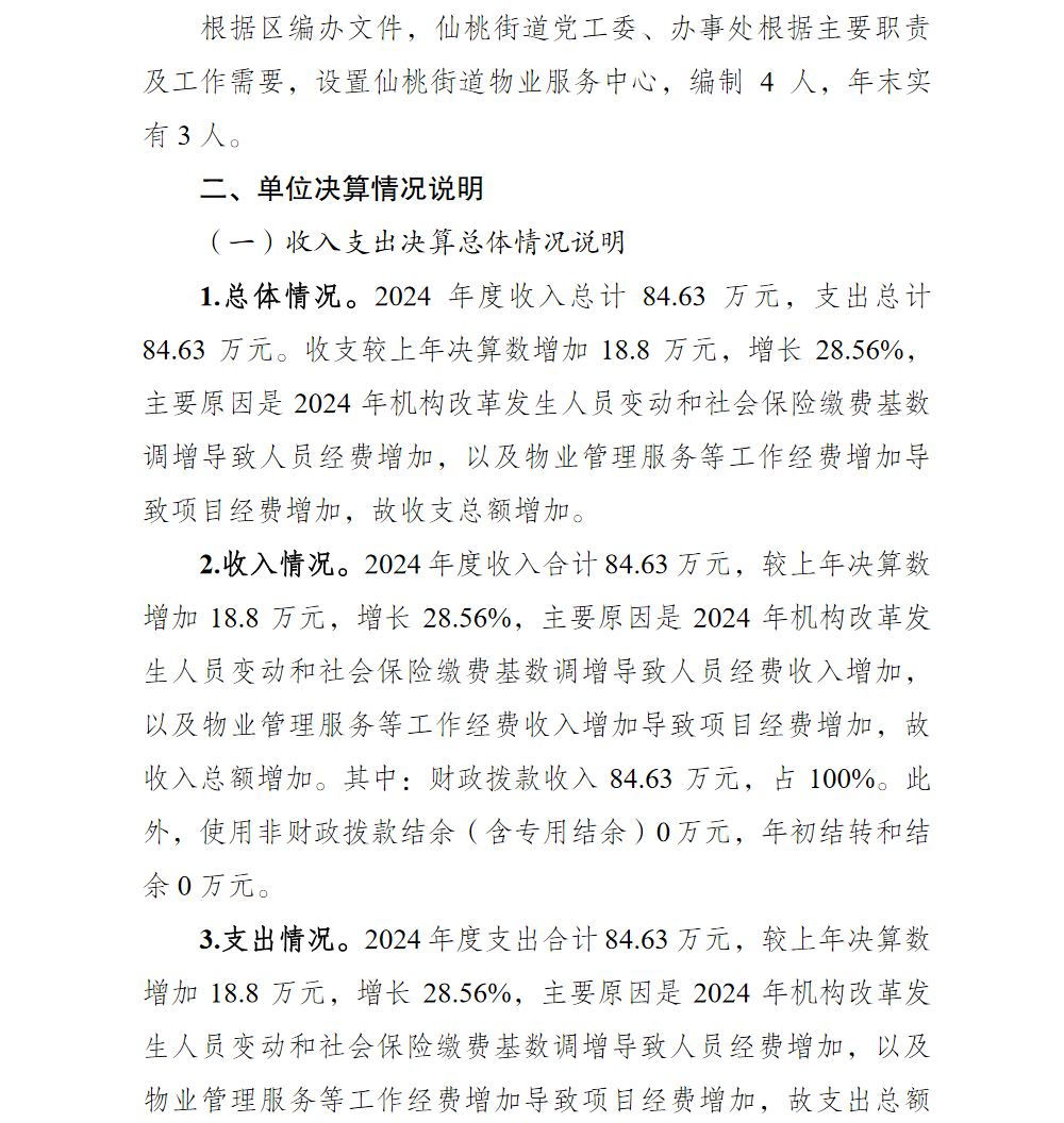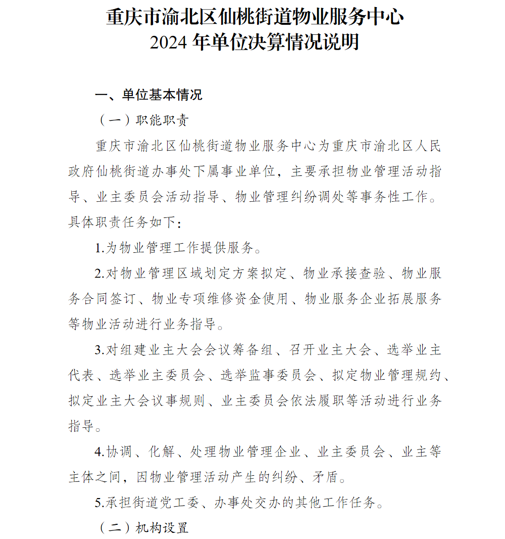 重庆市渝北区仙桃街道物业服务中心2024年单位决算情况说明