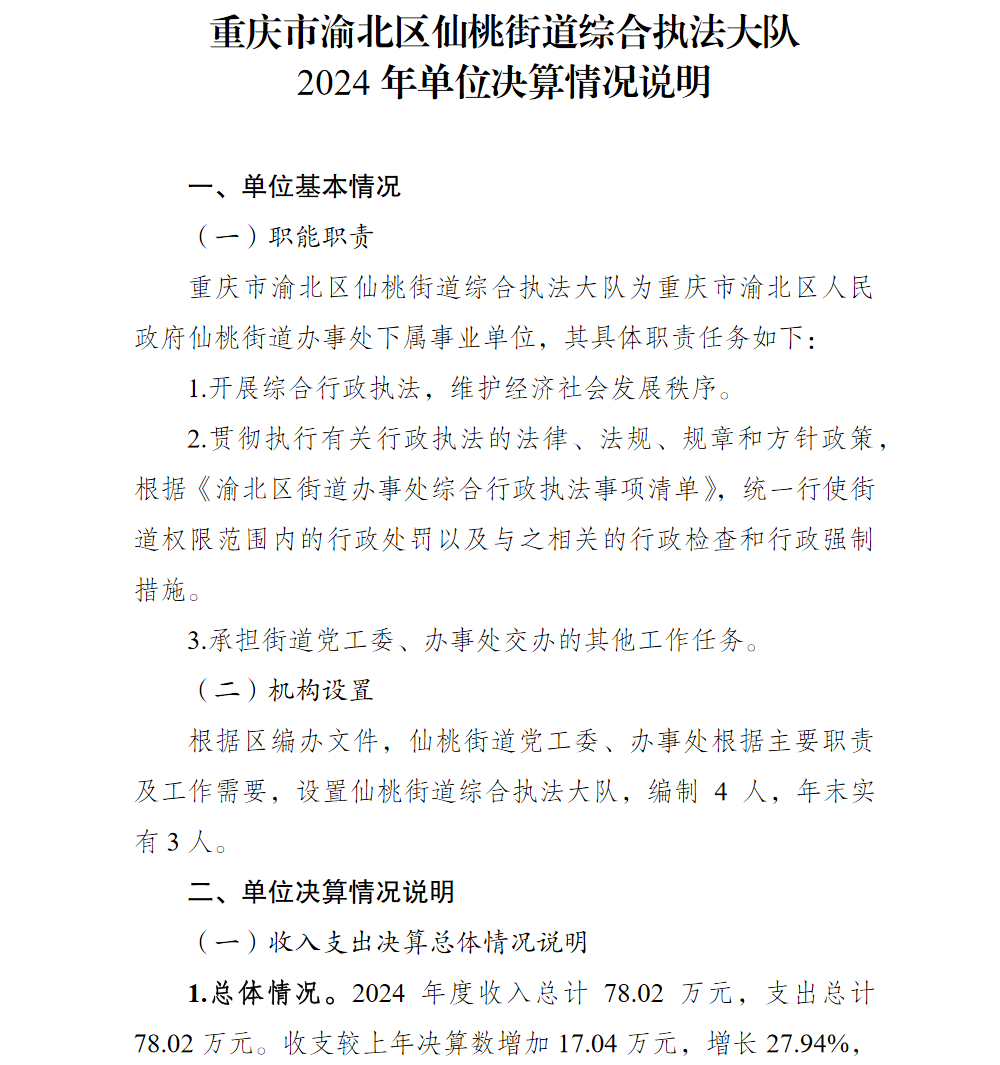 重庆市渝北区仙桃街道综合行政执法大队2024年单位决算情况说明
