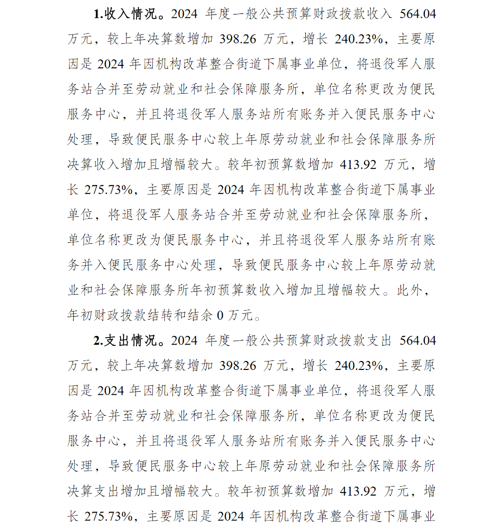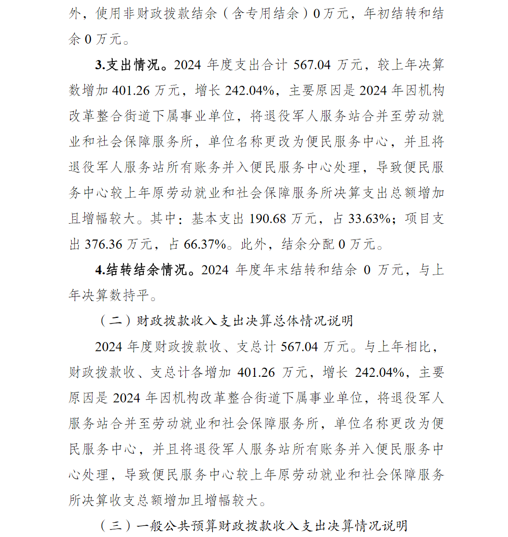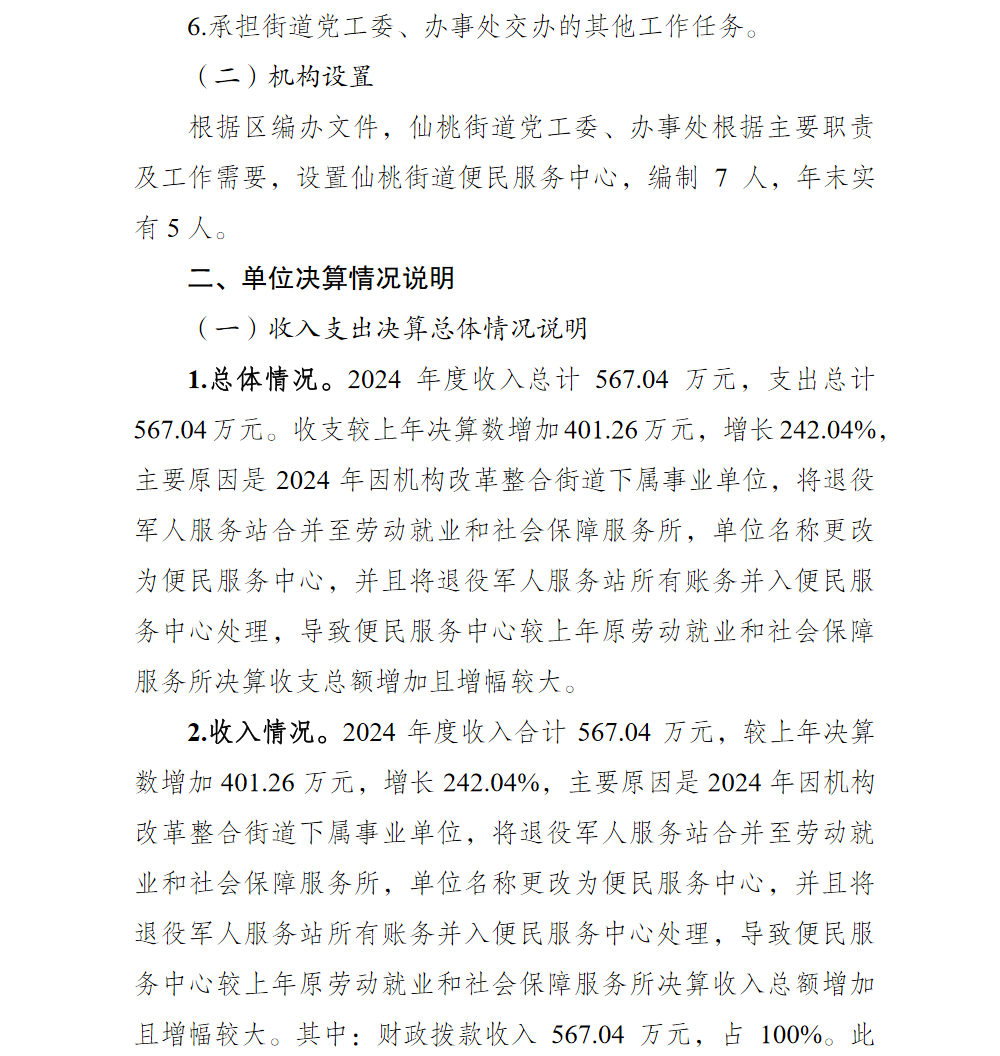 重庆市渝北区仙桃街道便民服务中心2024年单位决算情况说明