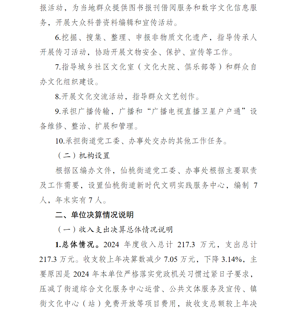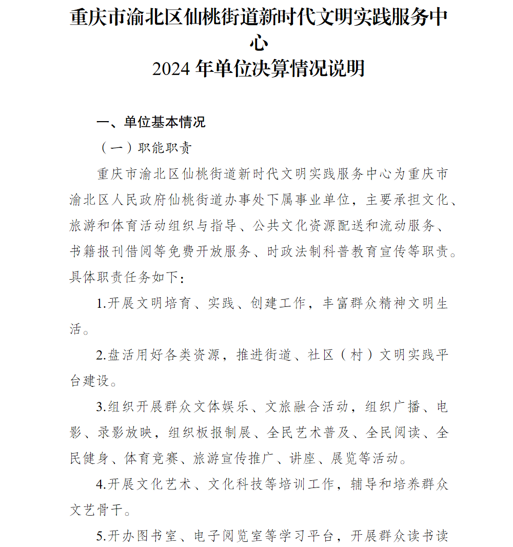 重庆市渝北区仙桃街道新时代文明实践服务中心2024年单位决算情况说明及附表.pdf