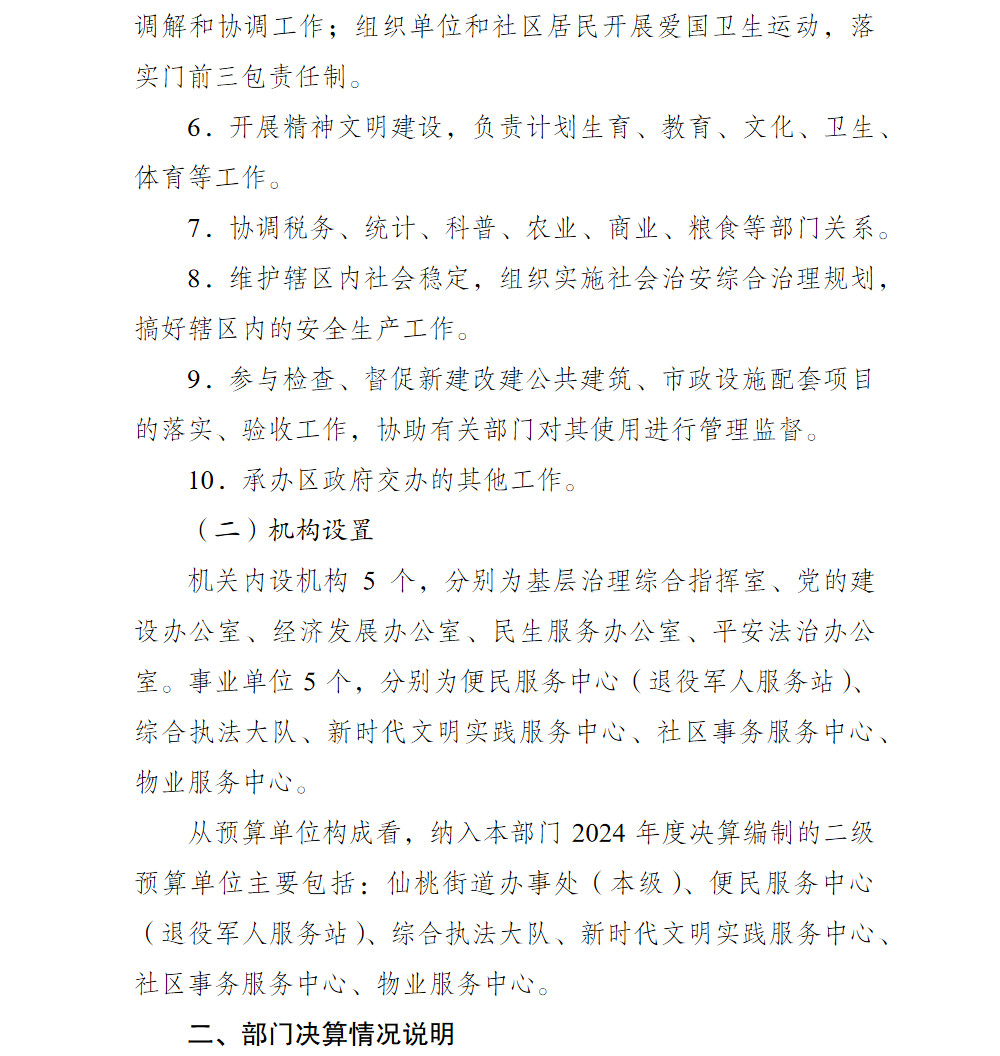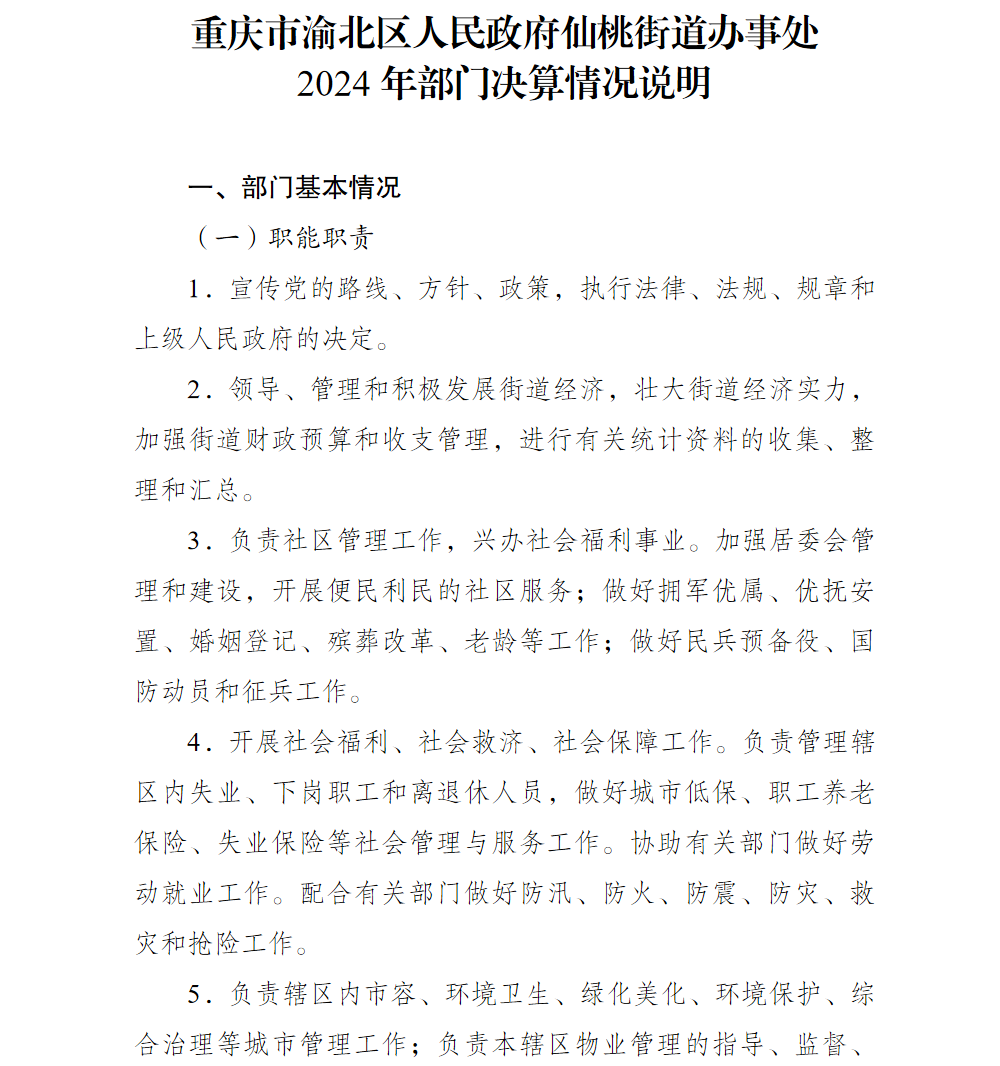重庆市渝北区人民政府仙桃街道办事处2024年部门决算情况说明