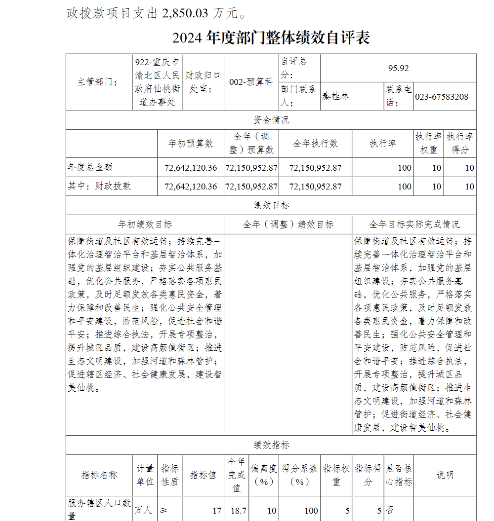 重庆市渝北区人民政府仙桃街道办事处2024年部门决算情况说明及附表.pdf