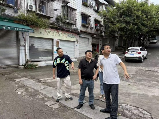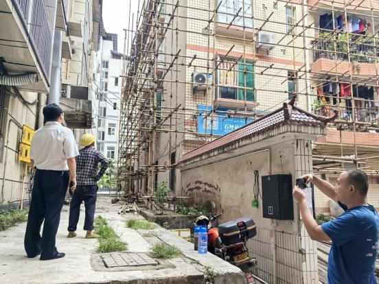(五)9月16日,镇专职副书记黄红川到石坪社区检查外墙砖整治施工安全。
