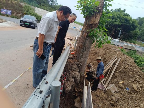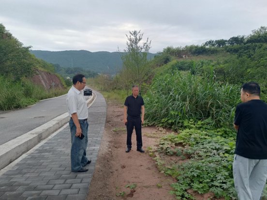 (四)9月22日,镇专职副书记黄红川检查护栏施工安全。