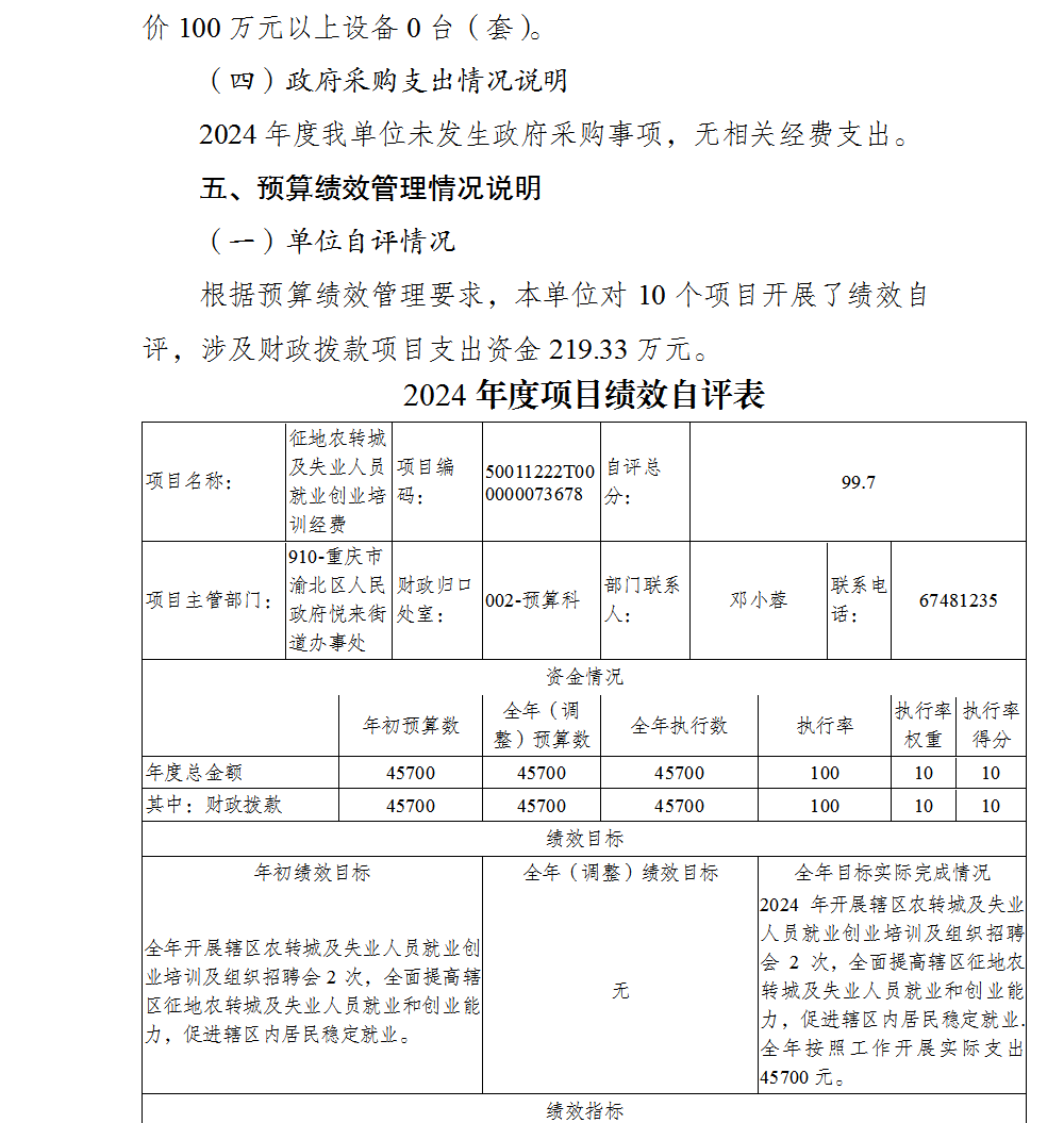 重庆市渝北区悦来街道便民服务中心2024年单位决算情况说明及附表.pdf