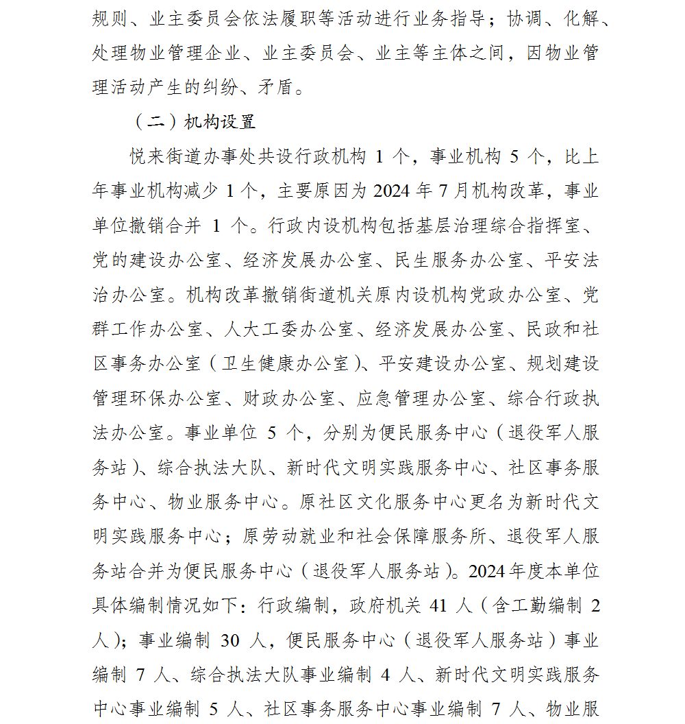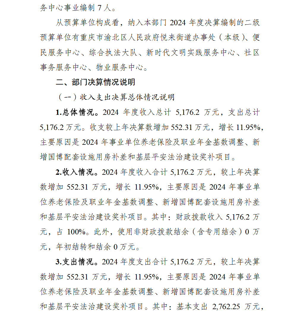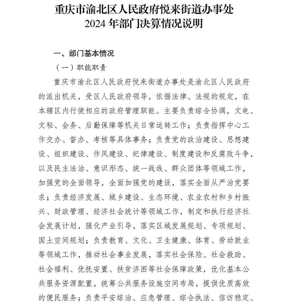 重庆市渝北区人民政府悦来街道办事处2024年部门决算情况说明