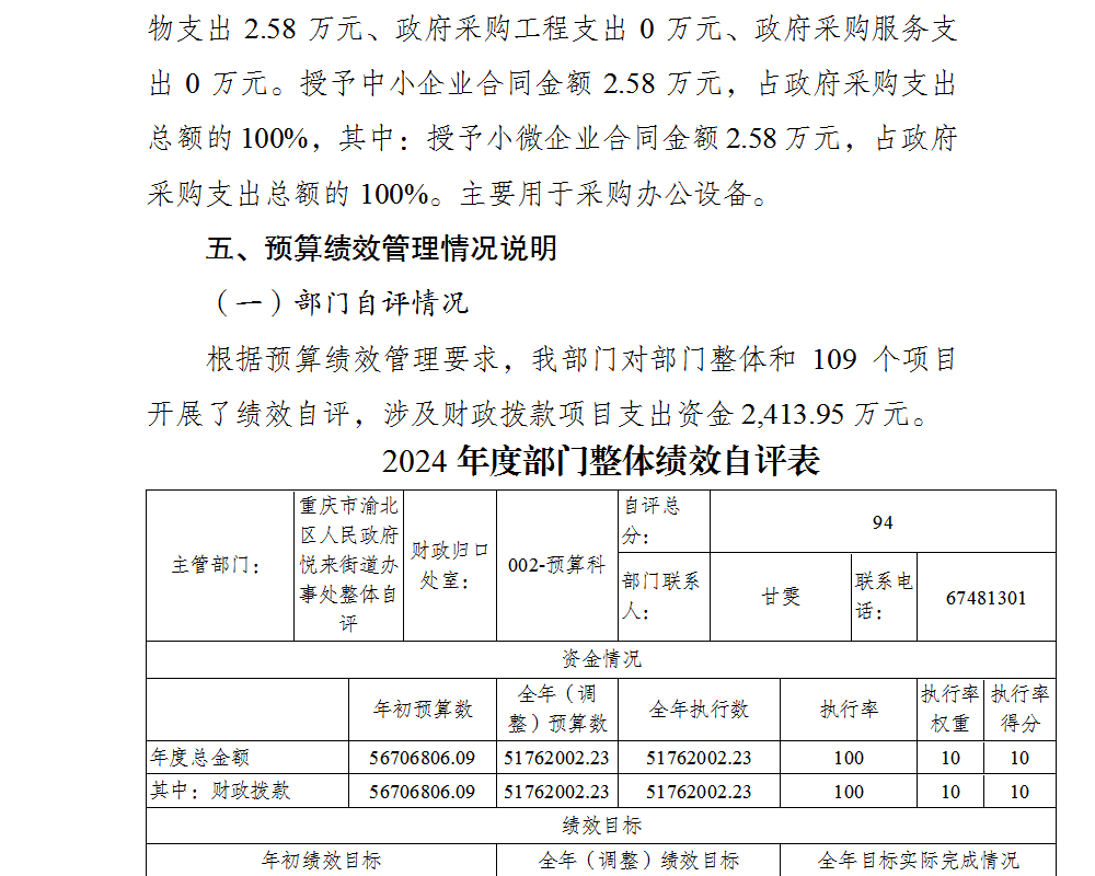 重庆市渝北区人民政府悦来街道办事处2024年部门决算情况说明及附表.pdf