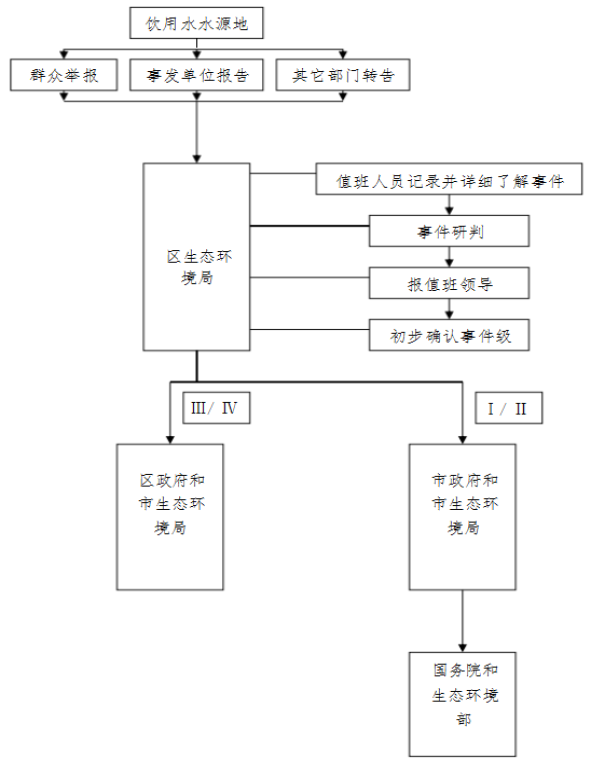 (3)发布一般(Ⅳ级)和较大(Ⅲ级)级别的饮用水源突发环境事件预警级别和处置指令;