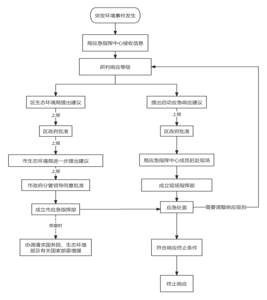 (3)悦来水厂水源地应急办公室要指导和协调有关成员单位认真开展环境信息、常规环境监测数据综合分析和风险评估工作,对发生在辖区境外和辖区内有可能对悦来水厂饮用水源地产生影响或造成饮用水源地污染事故的,应立即报告悦来水厂水源地应急指挥部。悦来水厂水源地应急指挥部根据实际情况分级响应。