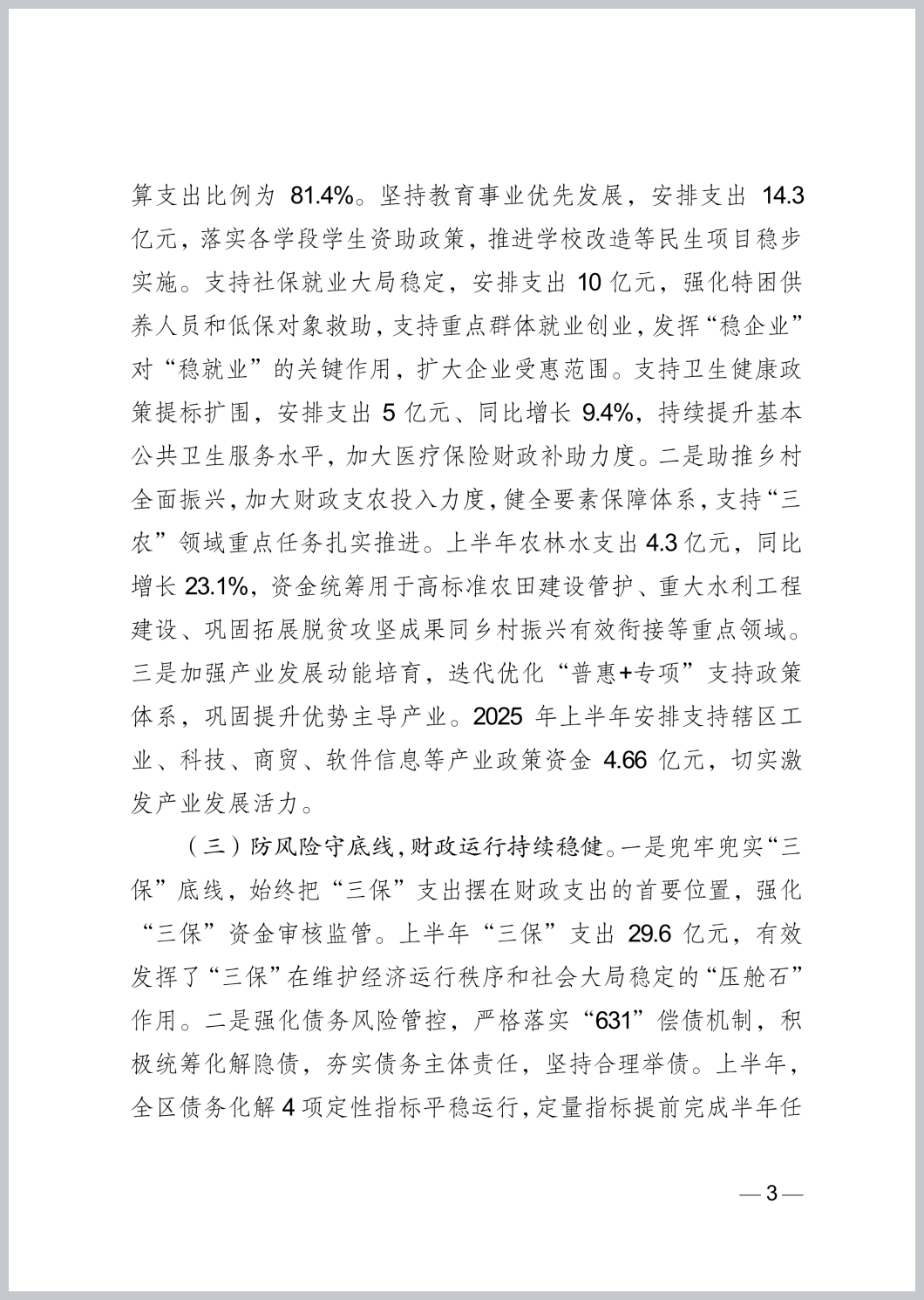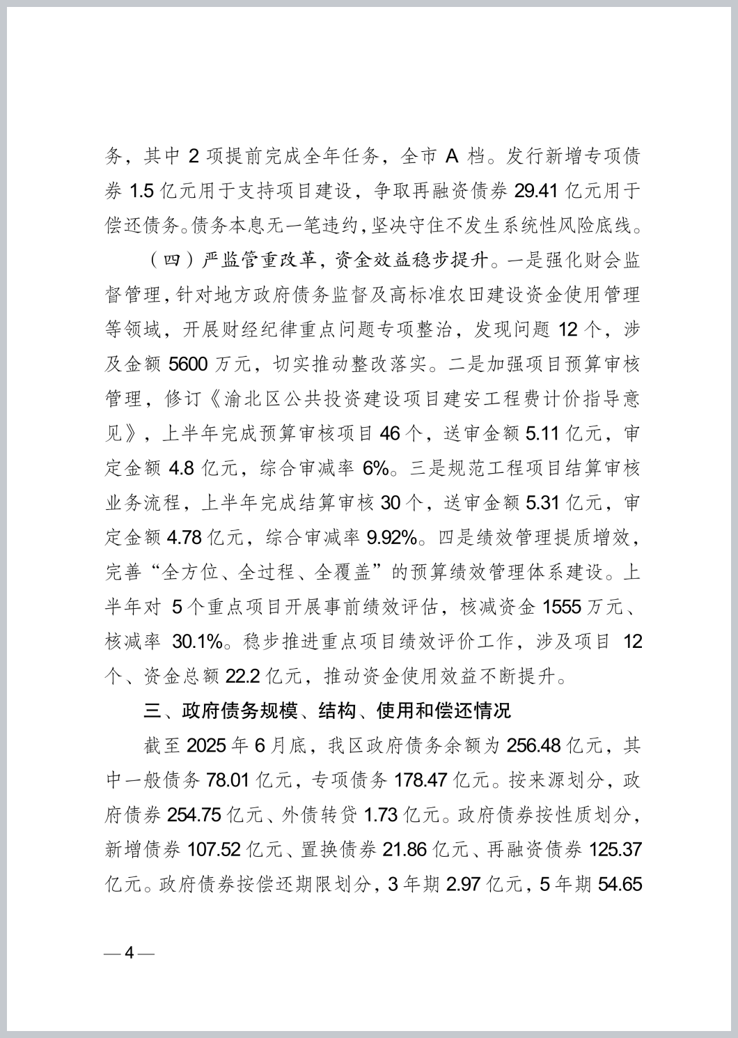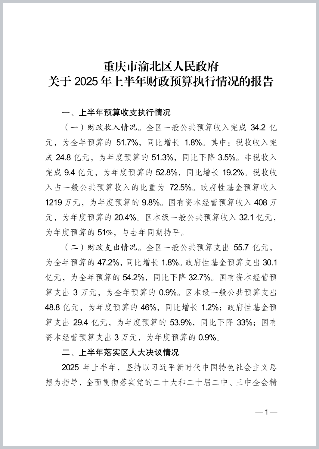 重庆市渝北区2025年上半年财政预算执行情况的报告