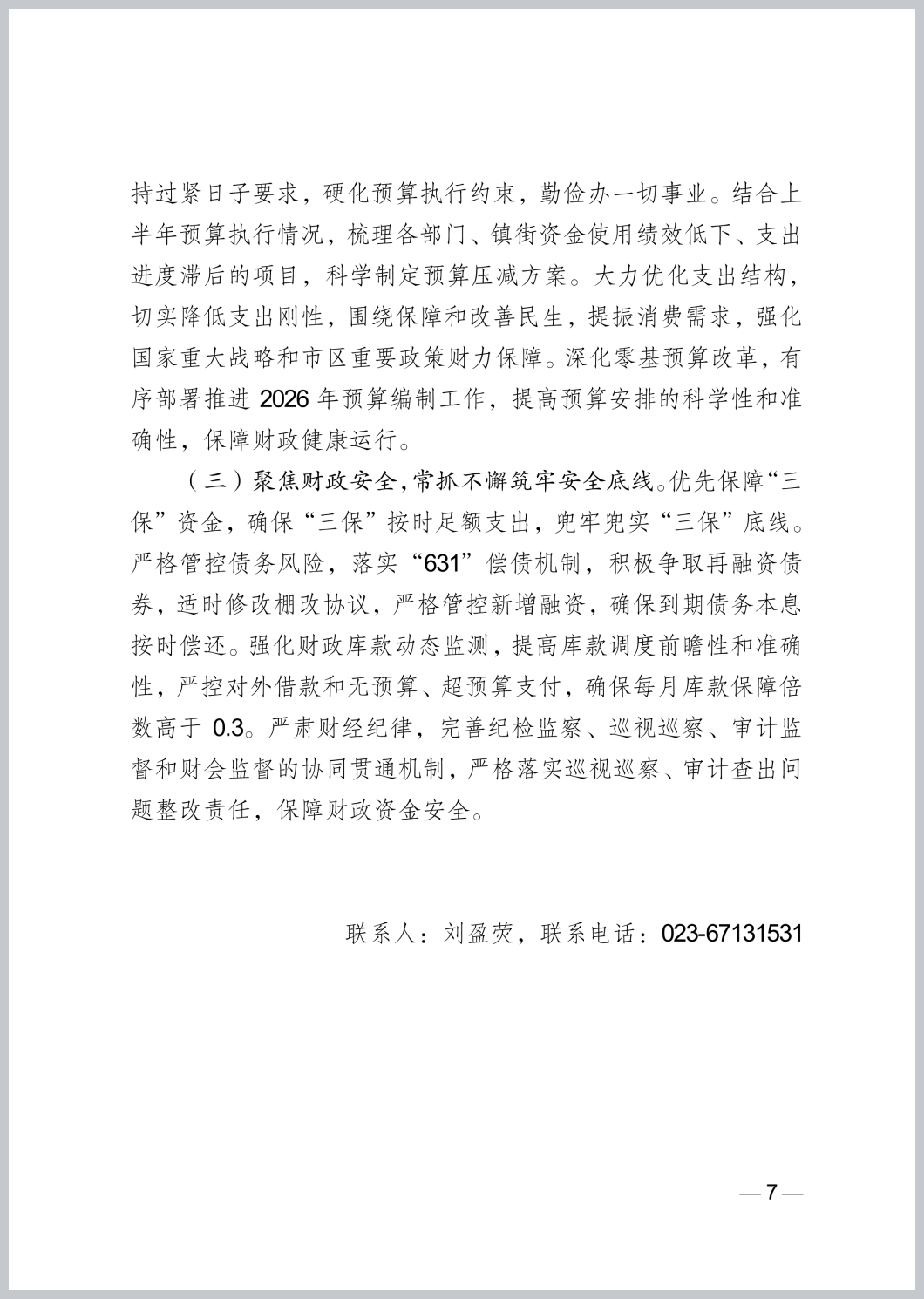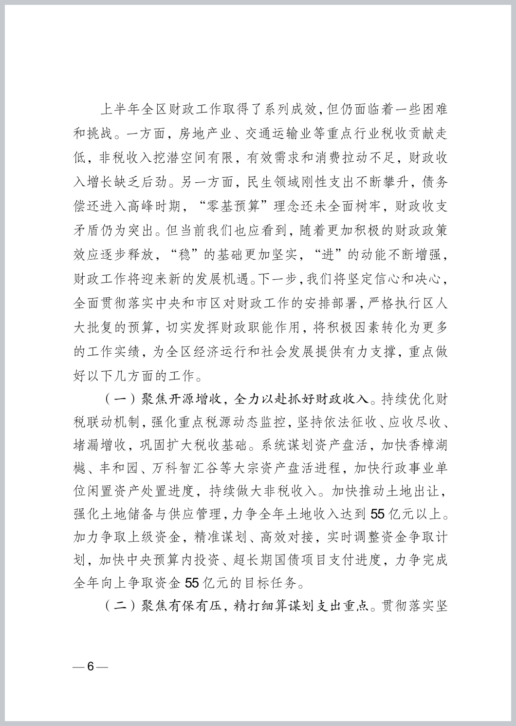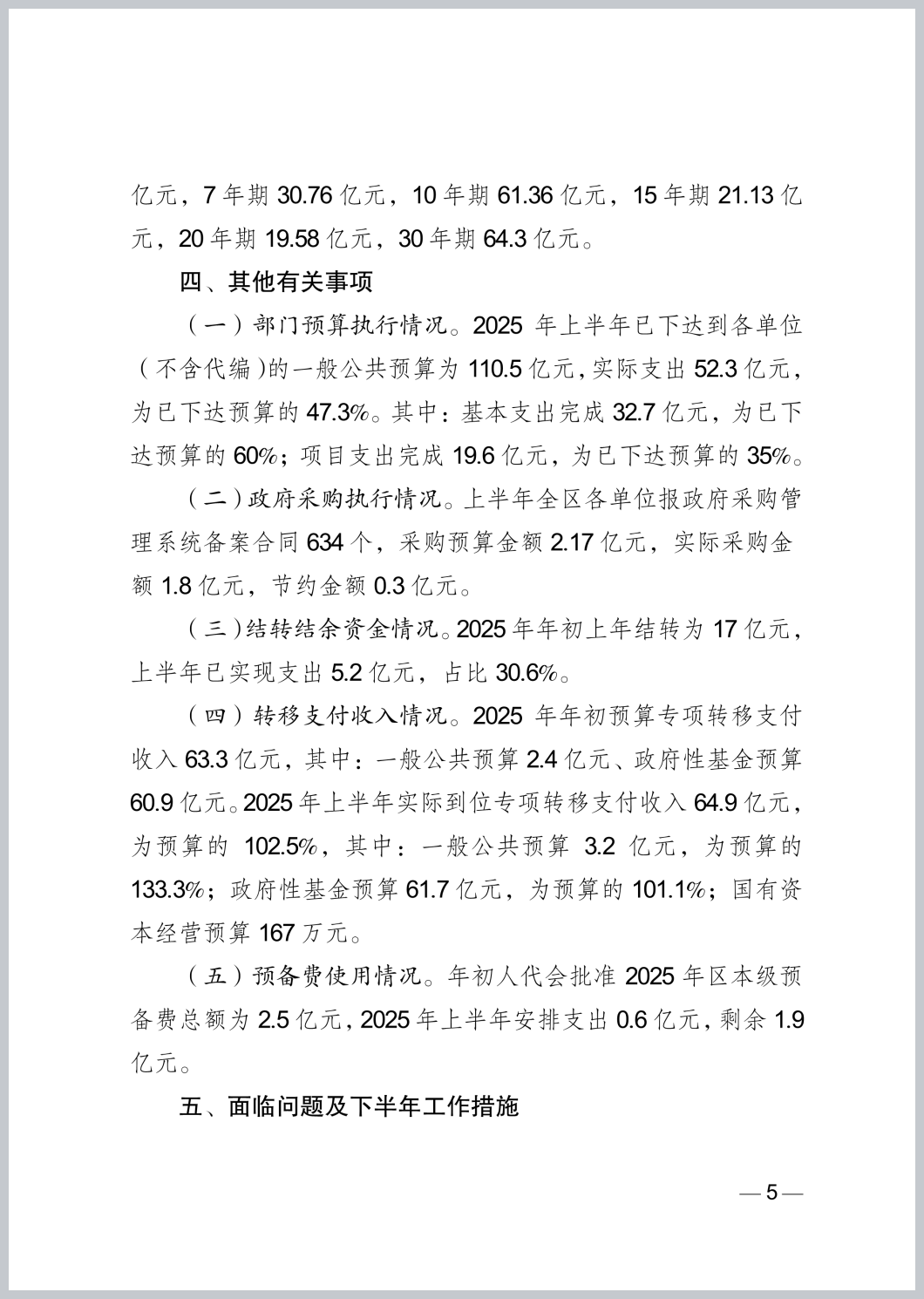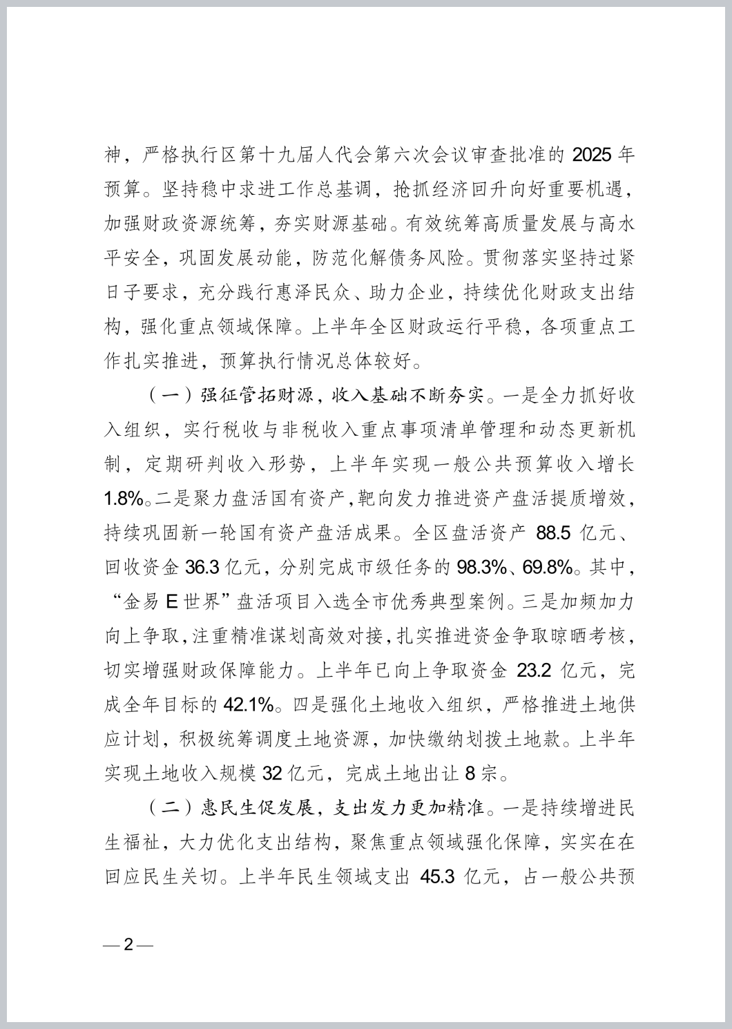 重庆市渝北区2025年上半年财政预算执行情况的报告