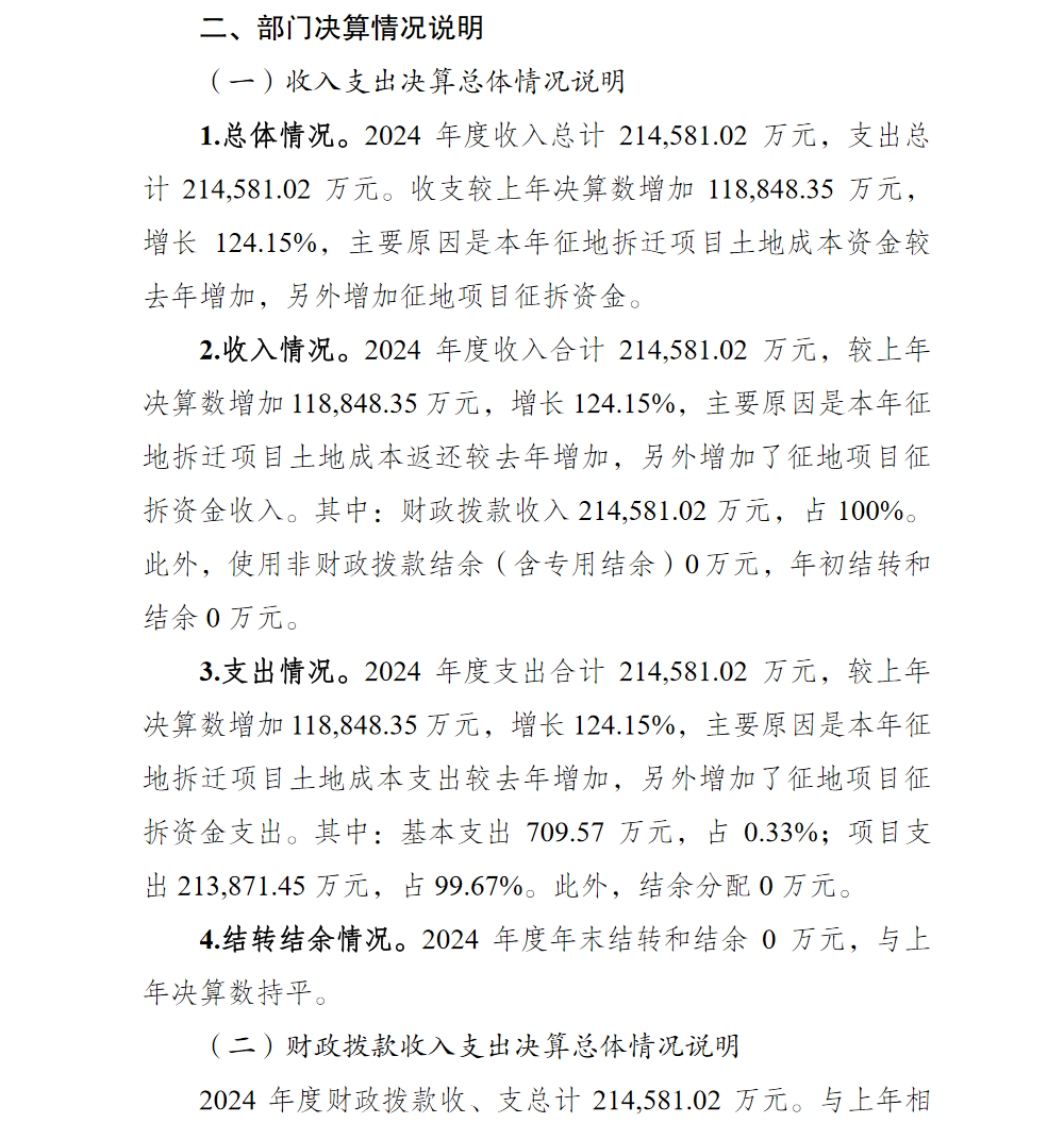 重庆市渝北区征地事务中心2024年部门决算情况说明