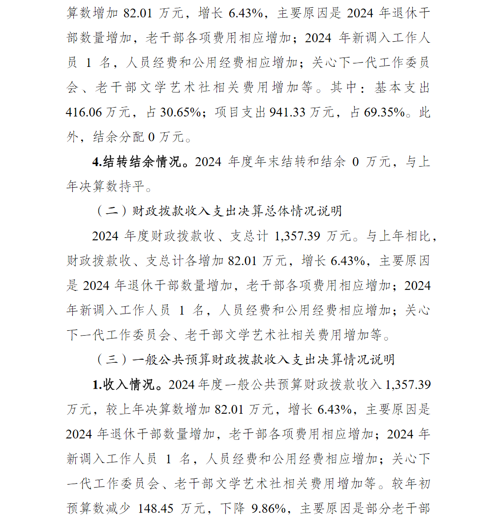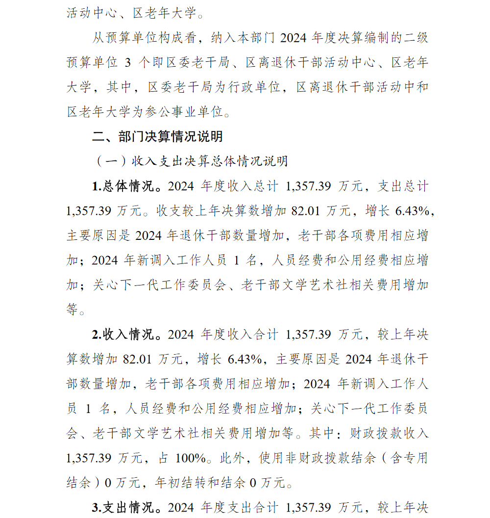 中共重庆市渝北区委老干部局2024年部门决算情况说明