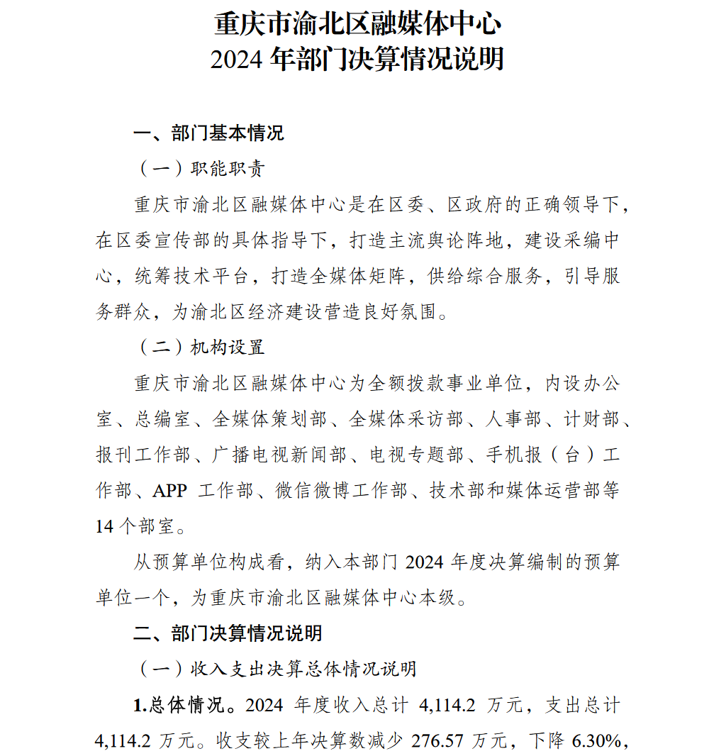 重庆市渝北区融媒体中心2024年部门决算情况说明