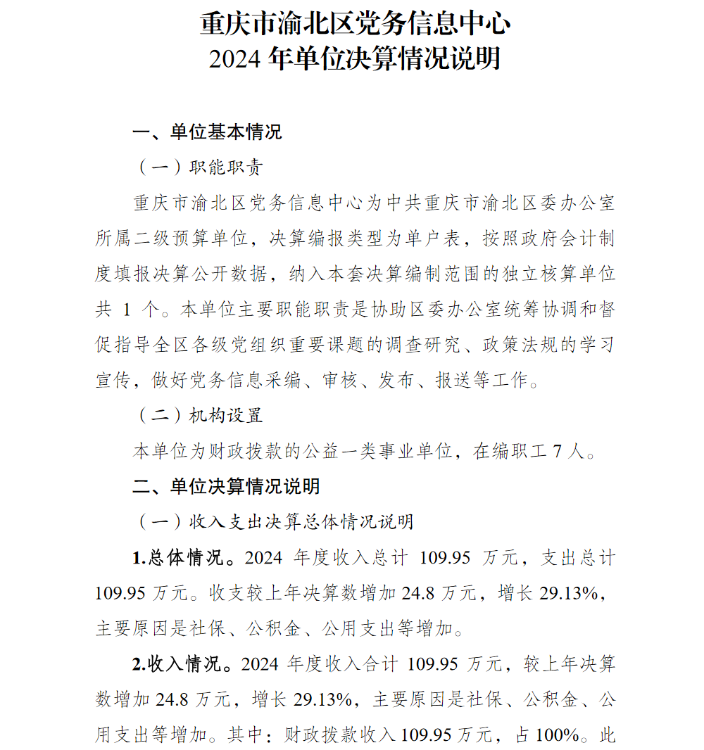 重庆市渝北区党务信息中心2024年单位决算情况说明