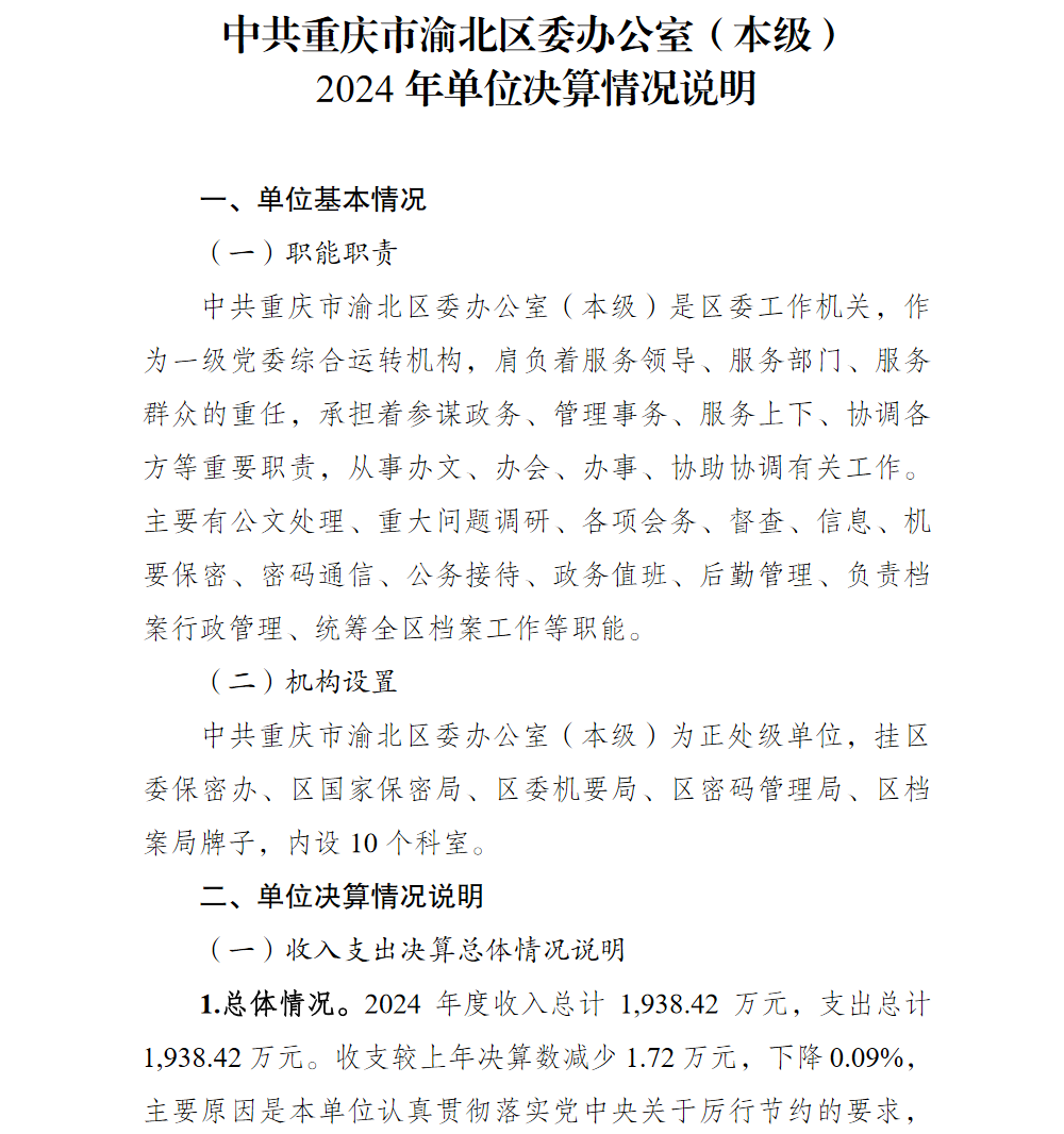 中共重庆市渝北区委办公室(本级)2024年单位决算情况说明