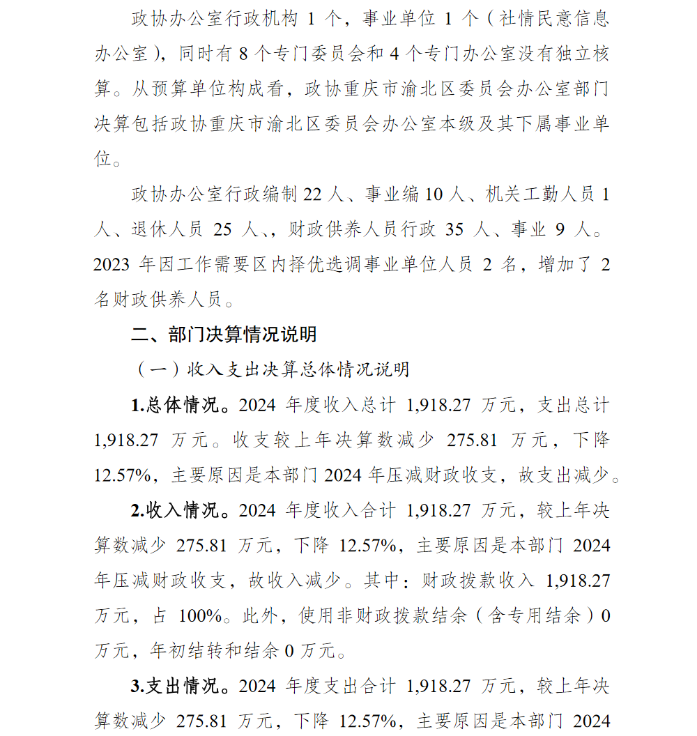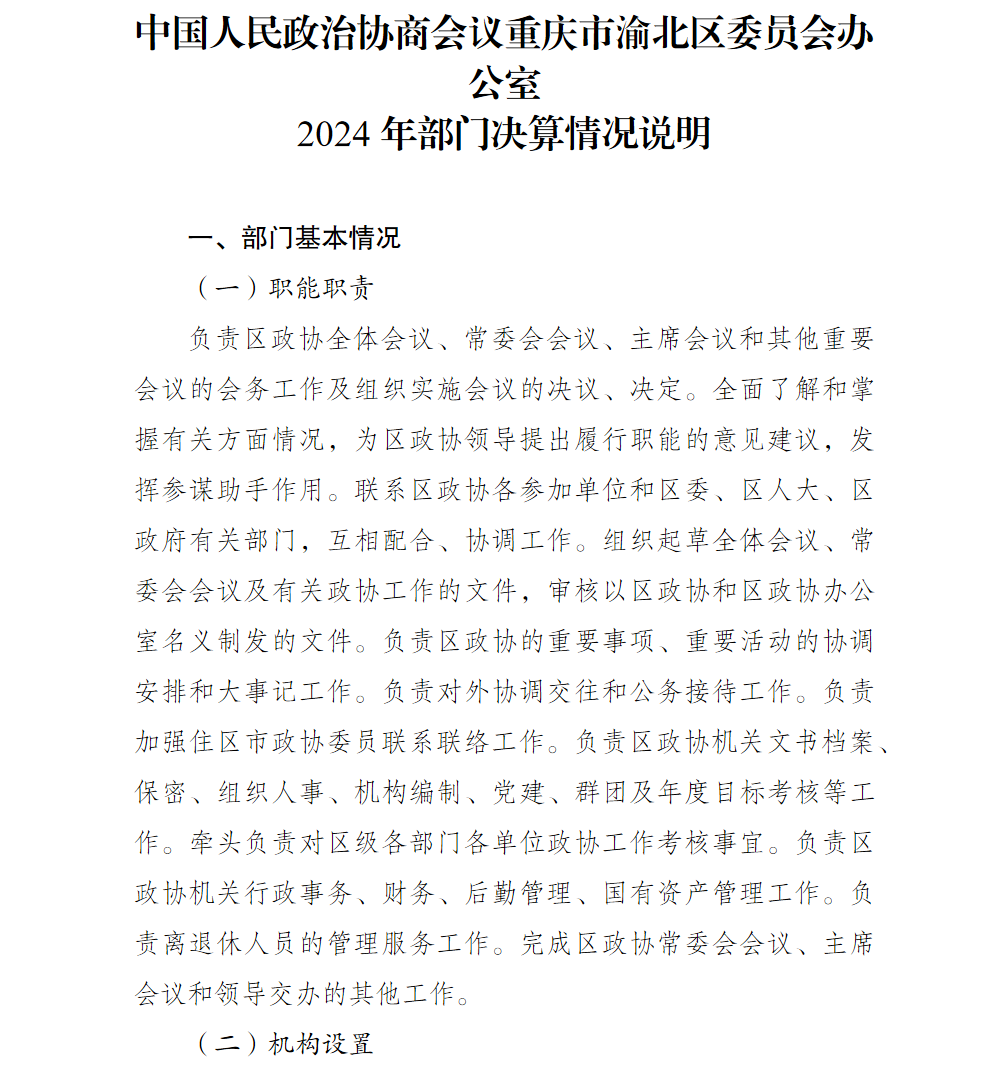 中国人民政治协商会议重庆市渝北区委员会办公室2024年部门决算情况说明