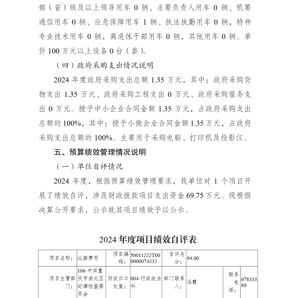 中共重庆市渝北区委巡察工作领导小组办公室2024年单位决算情况说明及附表.pdf
