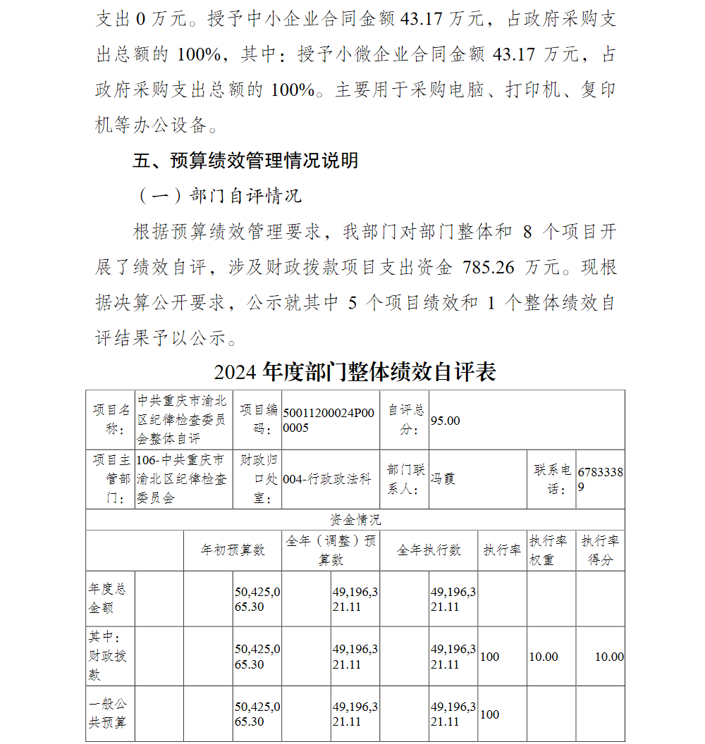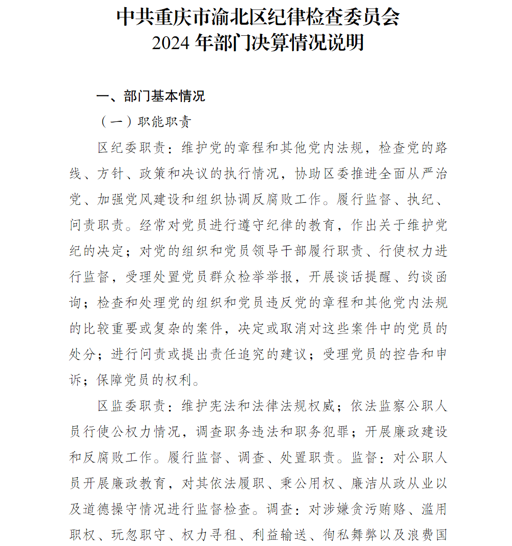 中共重庆市渝北区纪律检查委员会2024年部门决算情况说明及附表.pdf