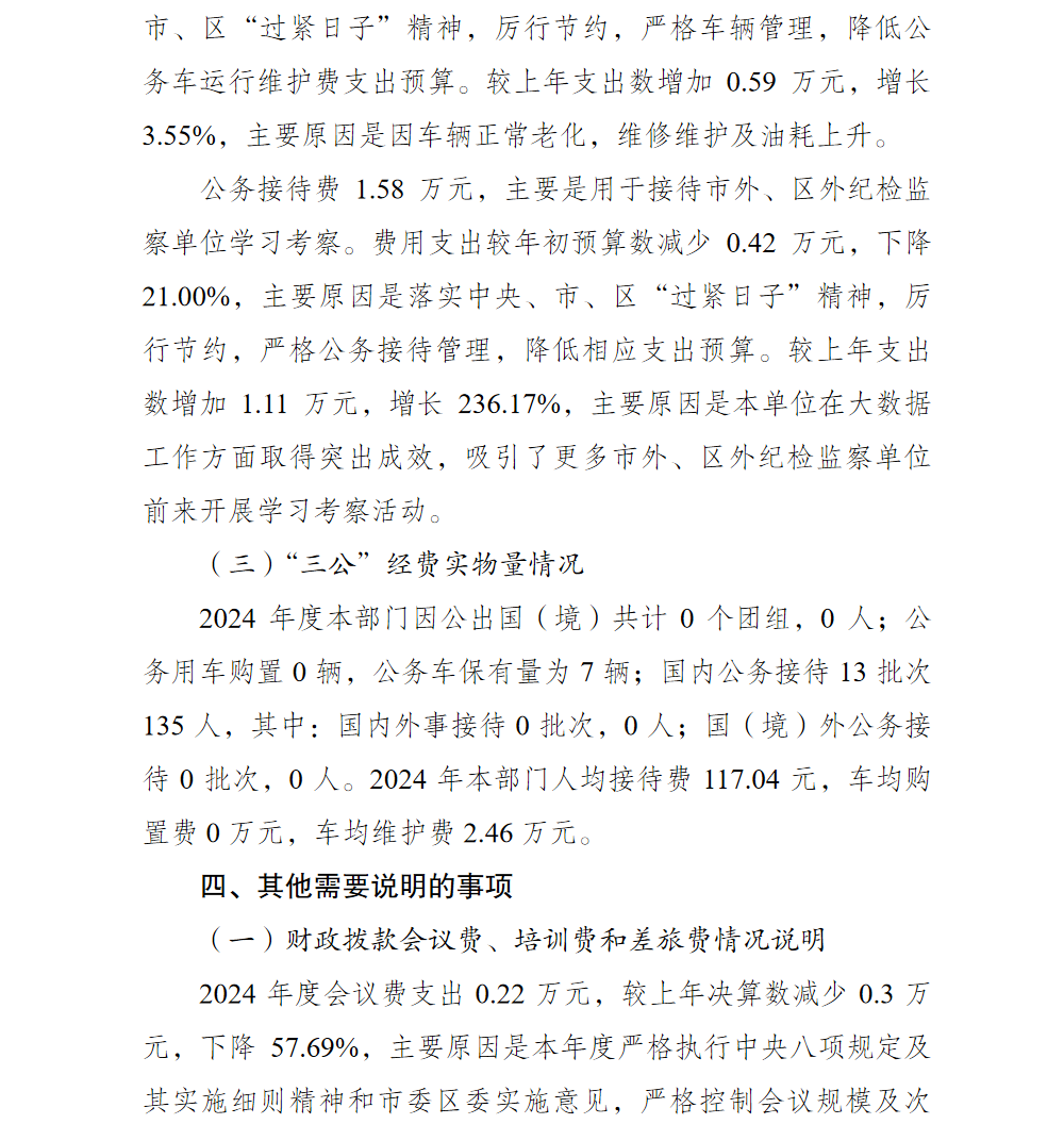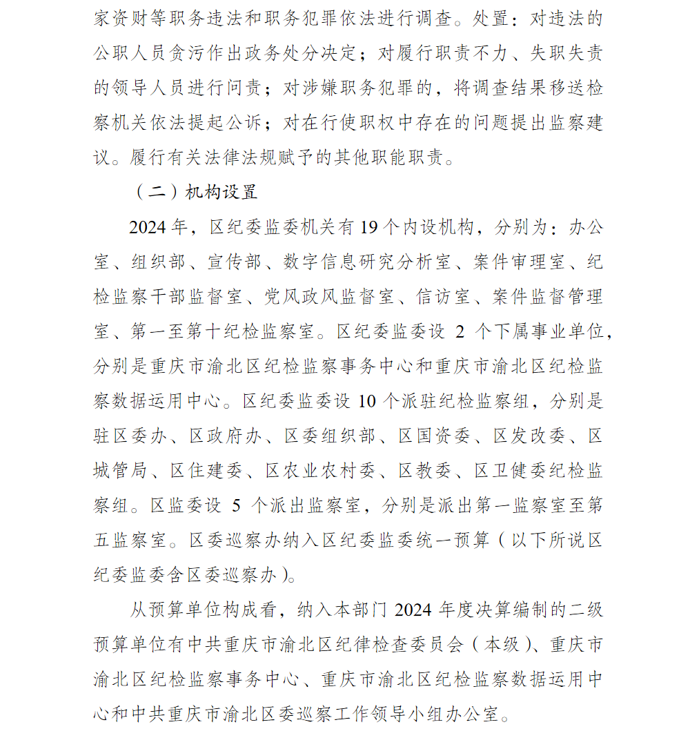 中共重庆市渝北区纪律检查委员会2024年部门决算情况说明