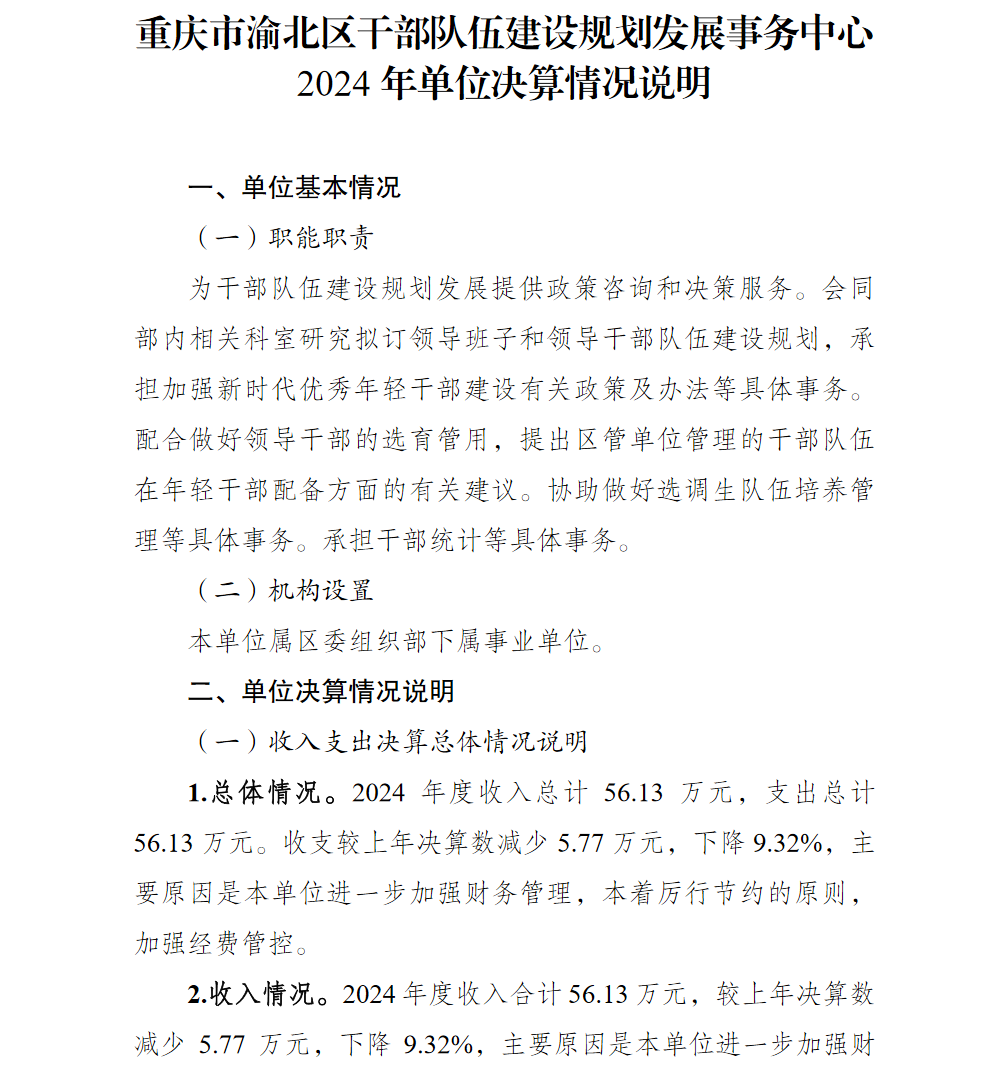 重庆市渝北区干部队伍建设规划发展事务中心2024年单位决算情况说明