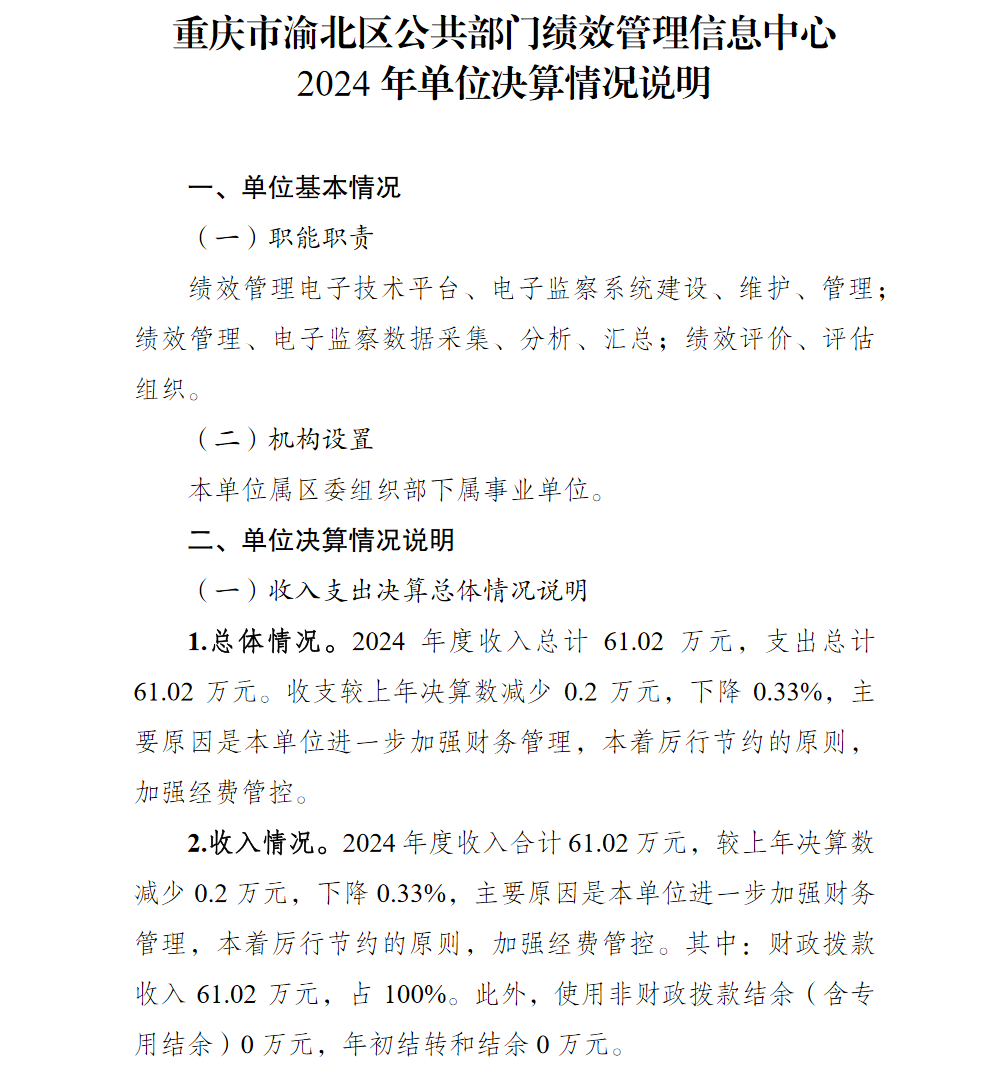 重庆市渝北区公共部门绩效管理信息中心2024年单位决算情况说明