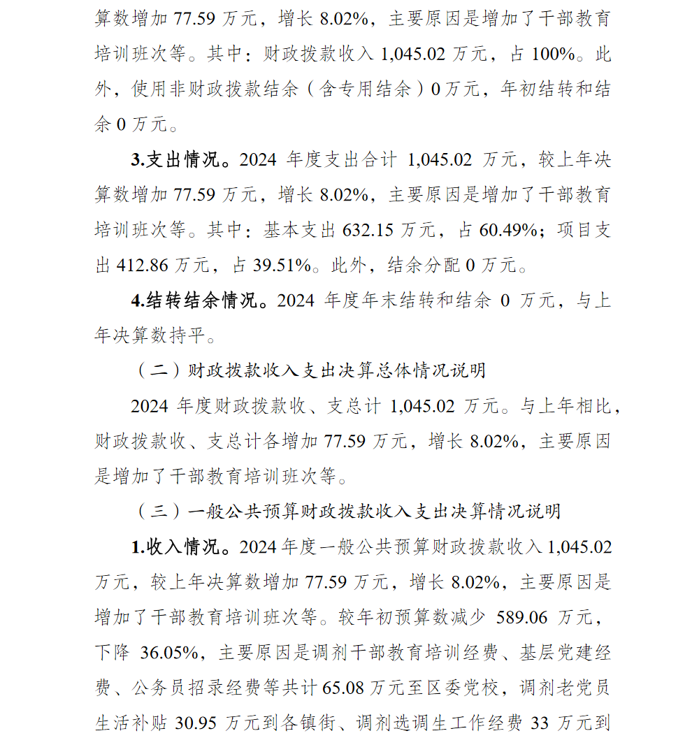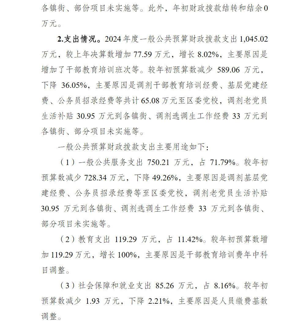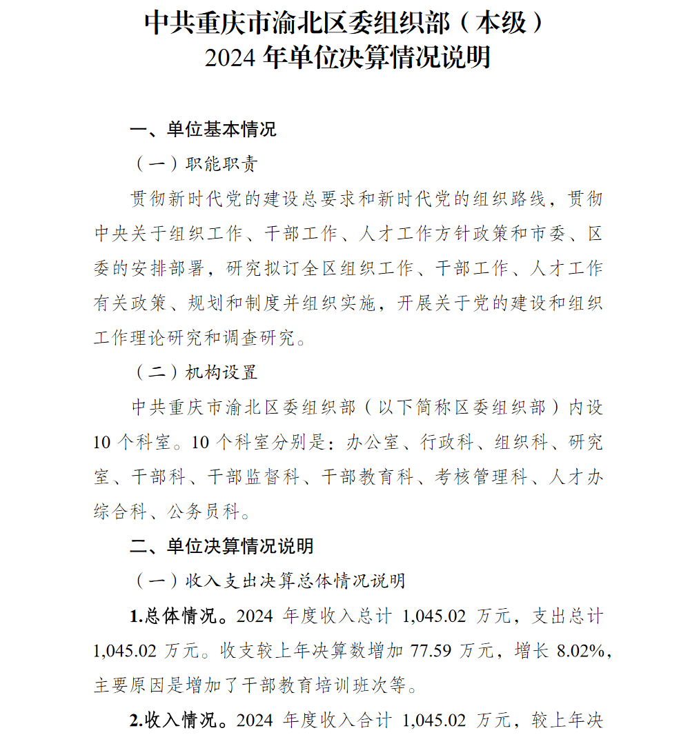 中共重庆市渝北区委组织部(本级)2024年单位决算情况说明