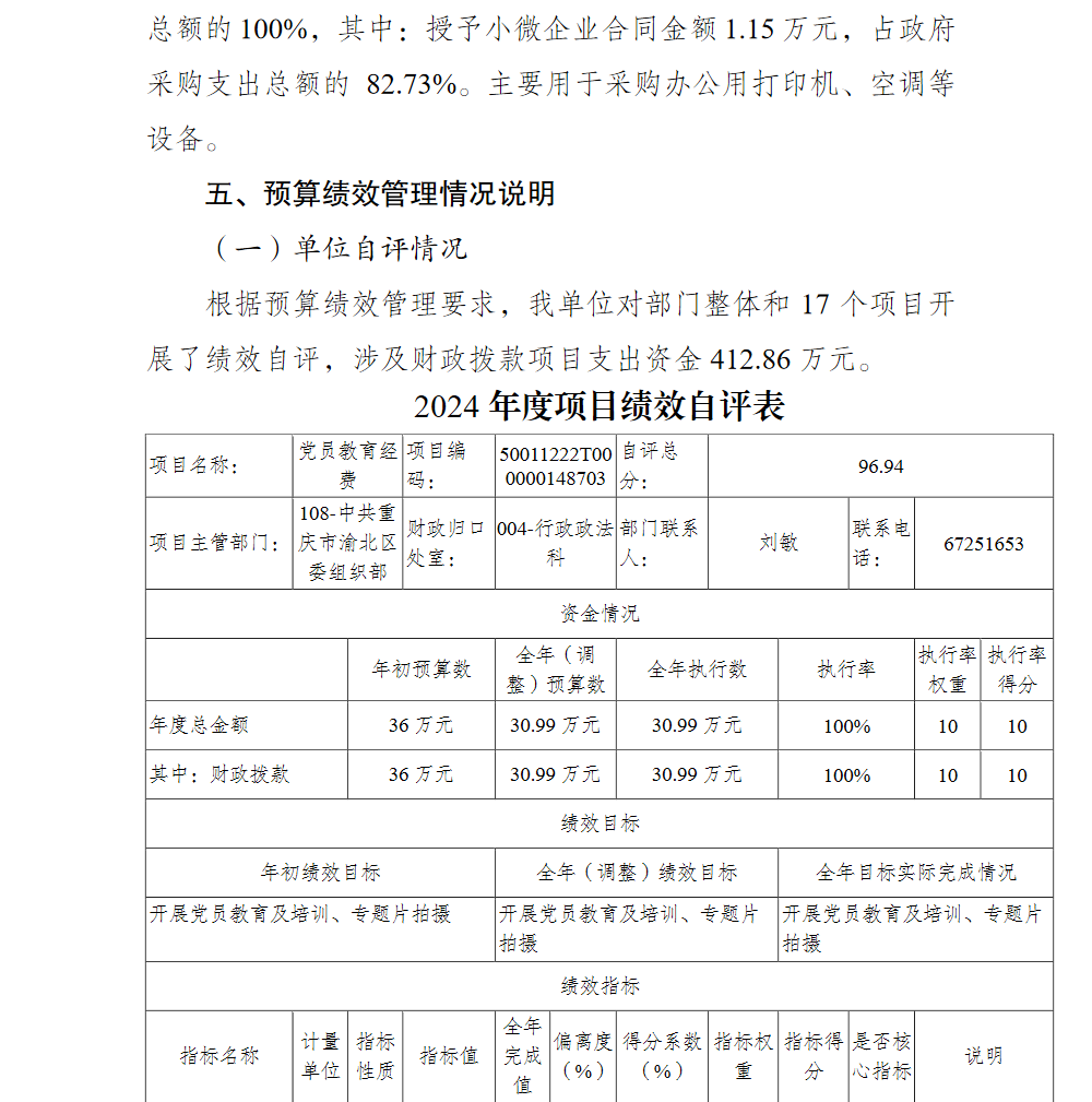 中共重庆市渝北区委组织部(本级)2024年单位决算情况说明及附表.pdf