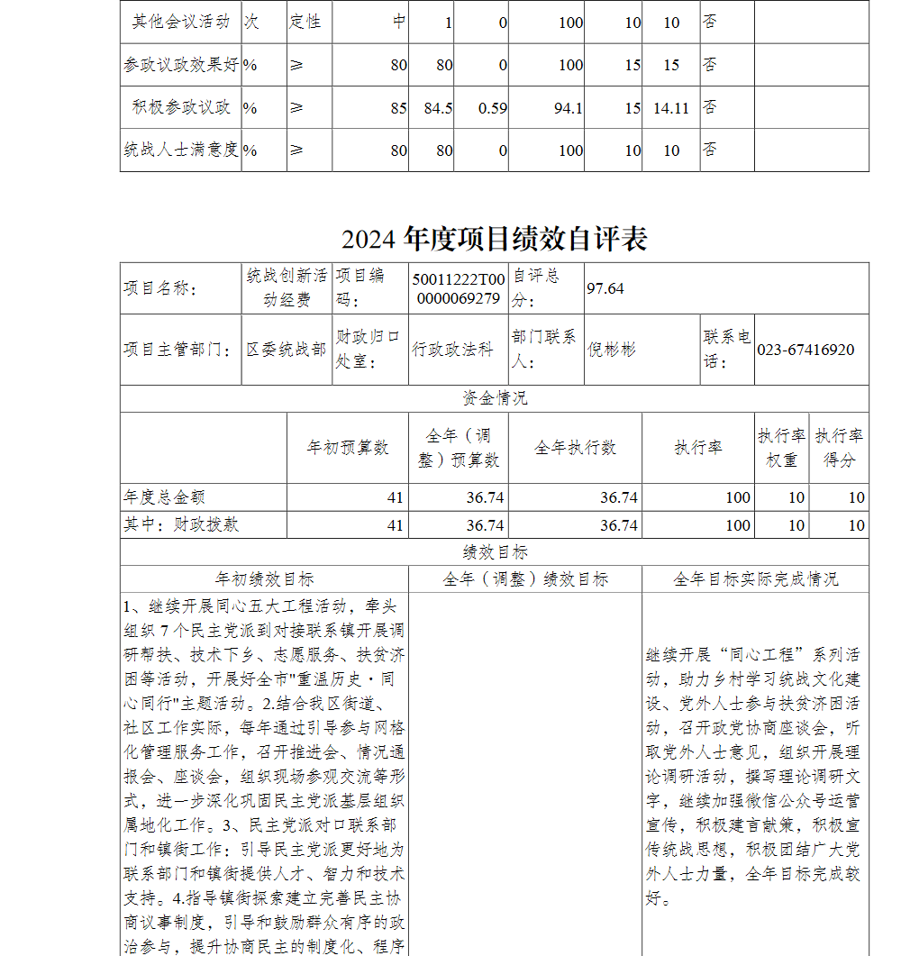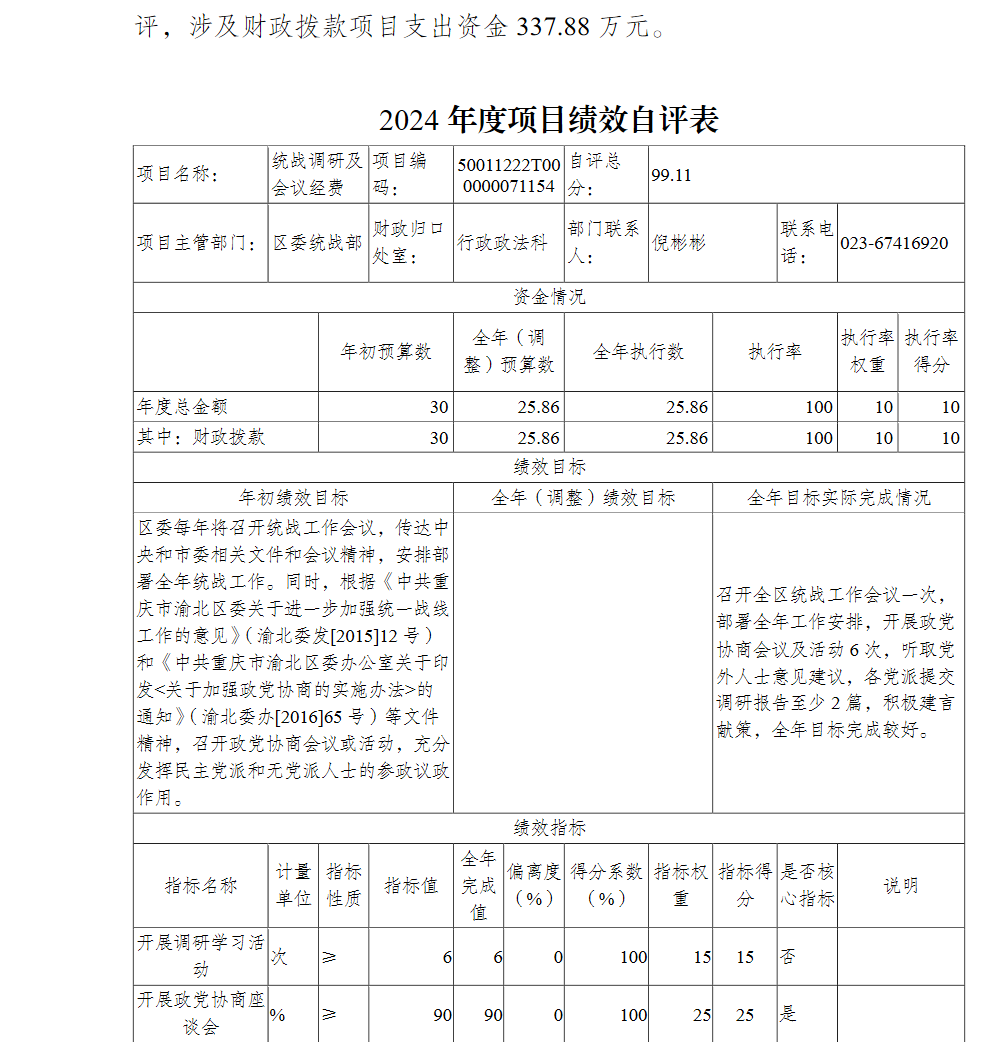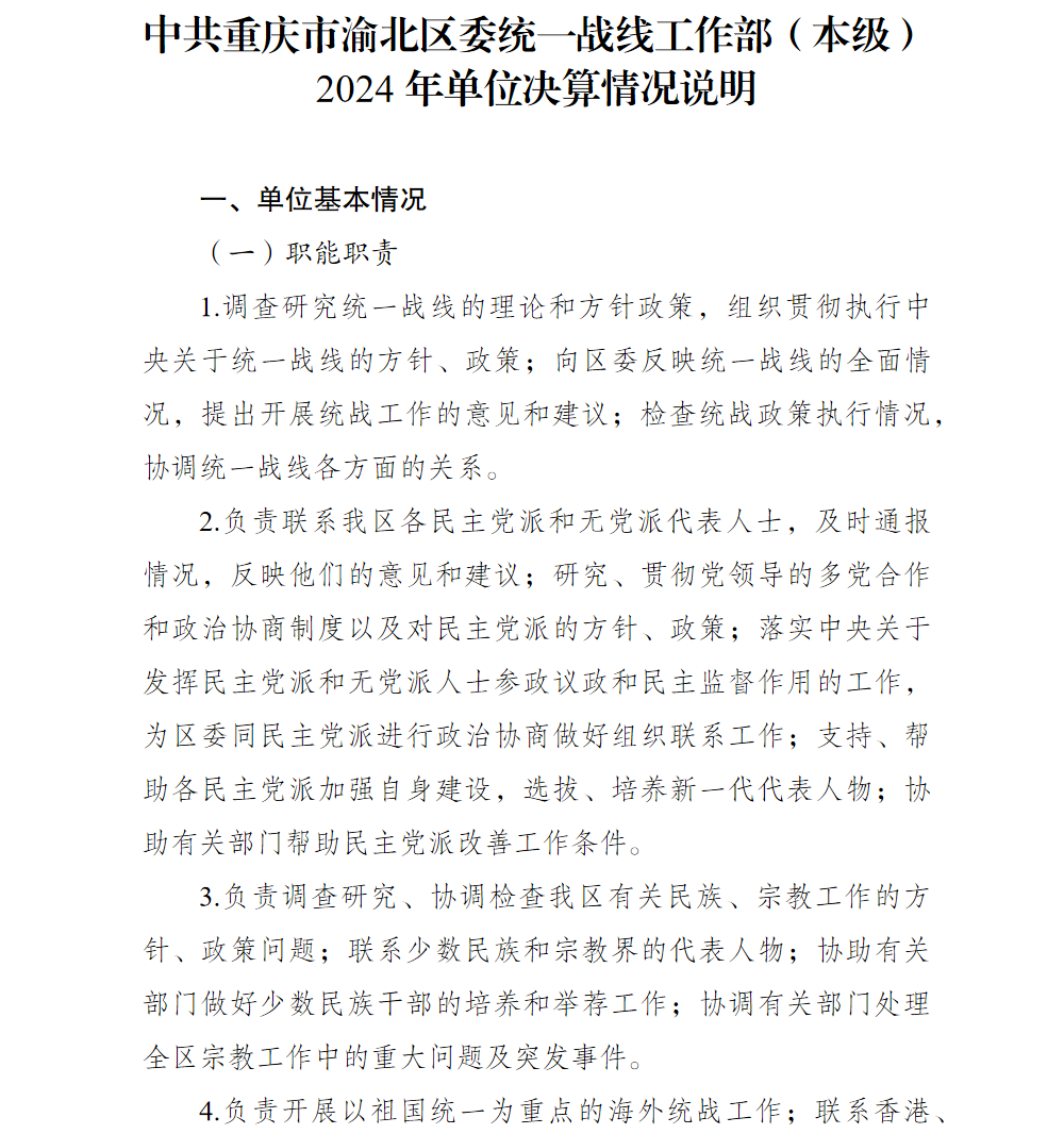 中共重庆市渝北区委统一战线工作部(本级)2024年单位决算情况说明及附表.pdf