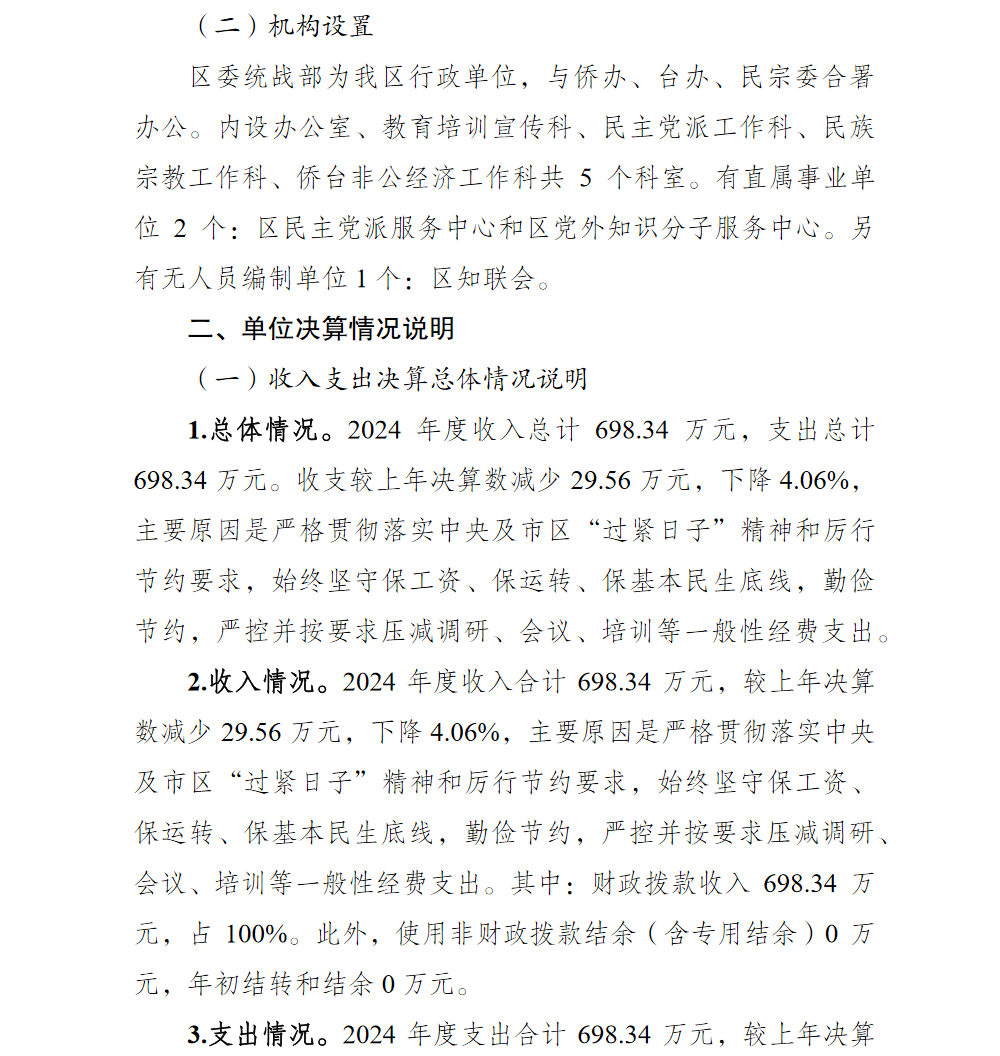 中共重庆市渝北区委统一战线工作部(本级)2024年单位决算情况说明