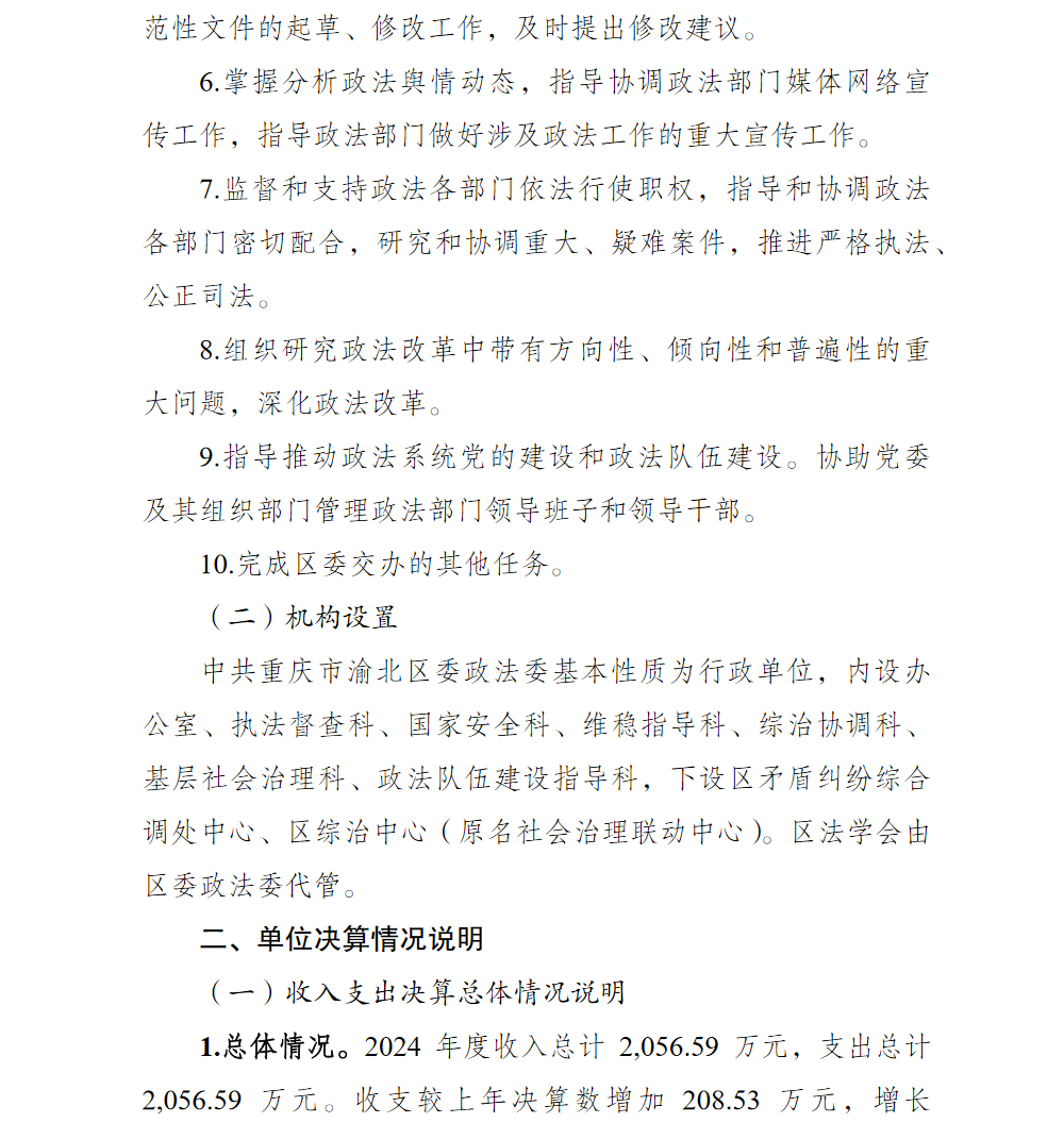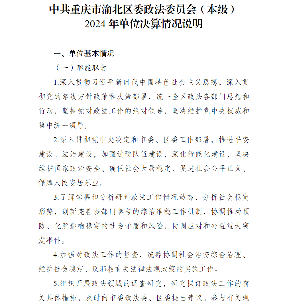 中共重庆市渝北区委政法委员会(本级)2024年单位决算情况说明