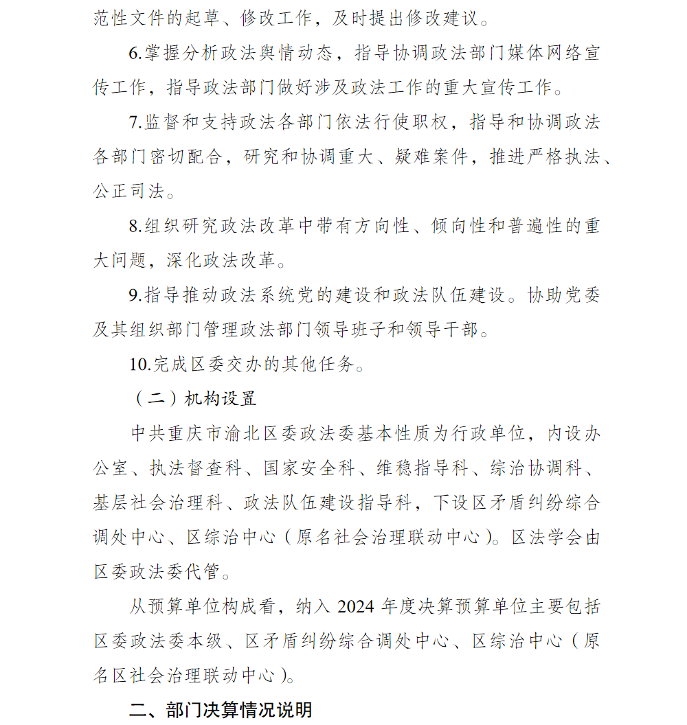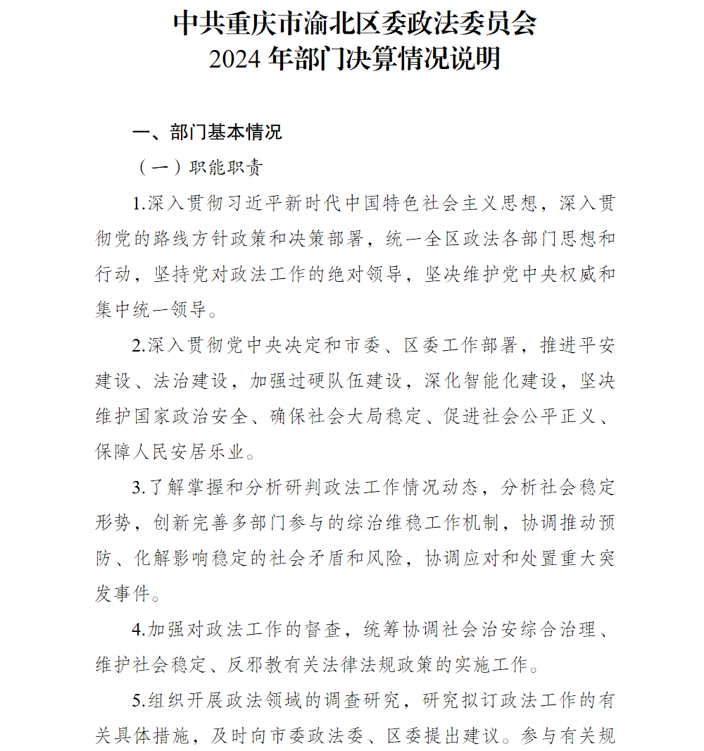 中共重庆市渝北区委政法委员会2024年部门决算情况说明